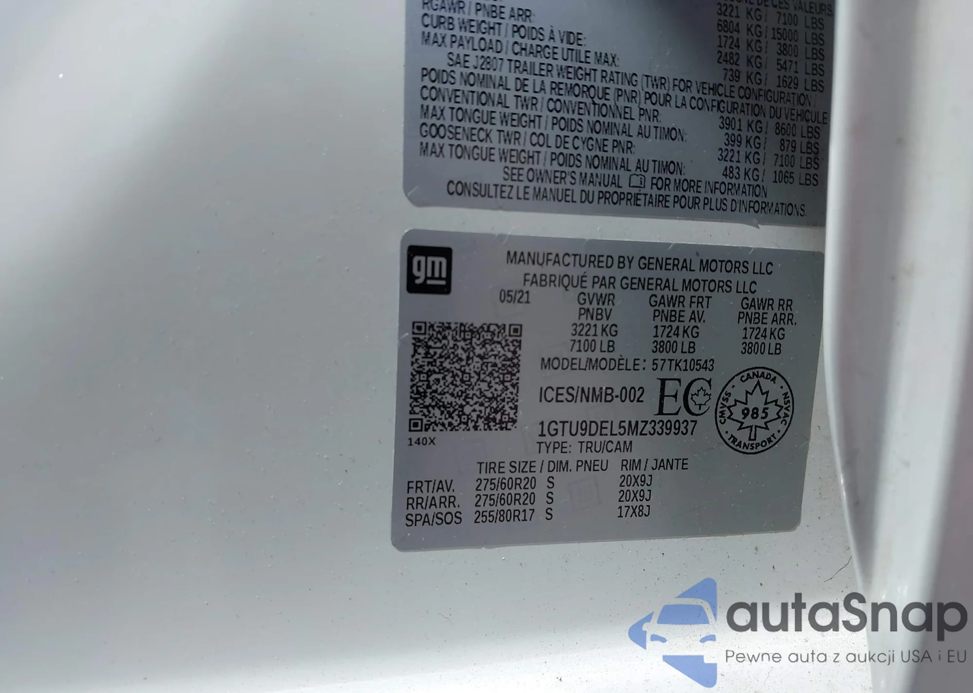 VIN: 1GTU9DEL5MZ339937