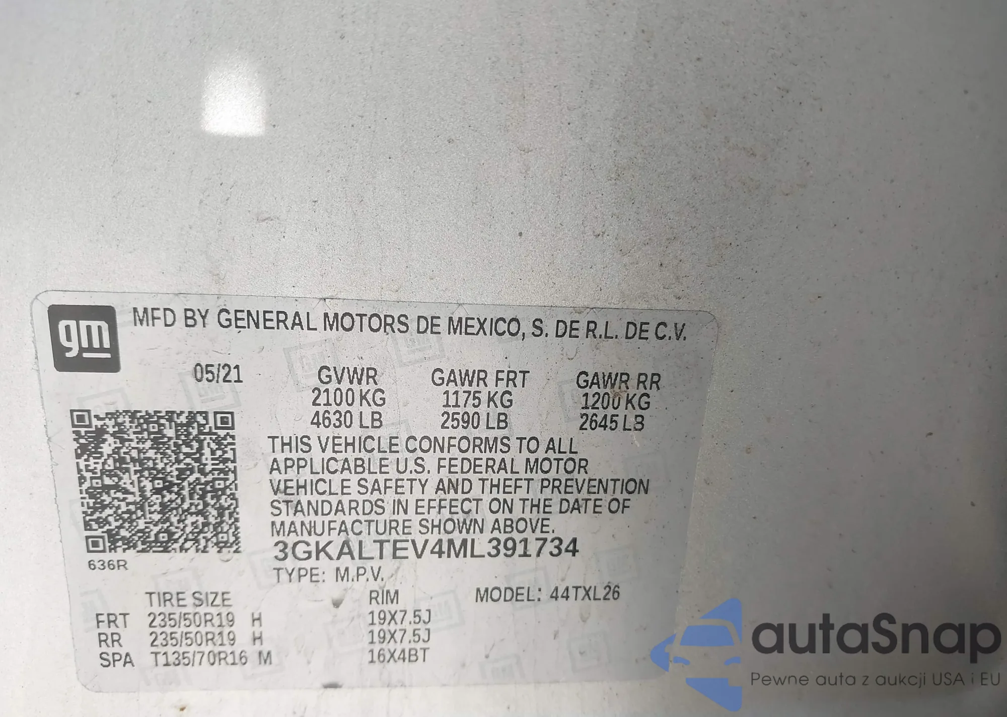 VIN: 3GKALTEV4ML391734