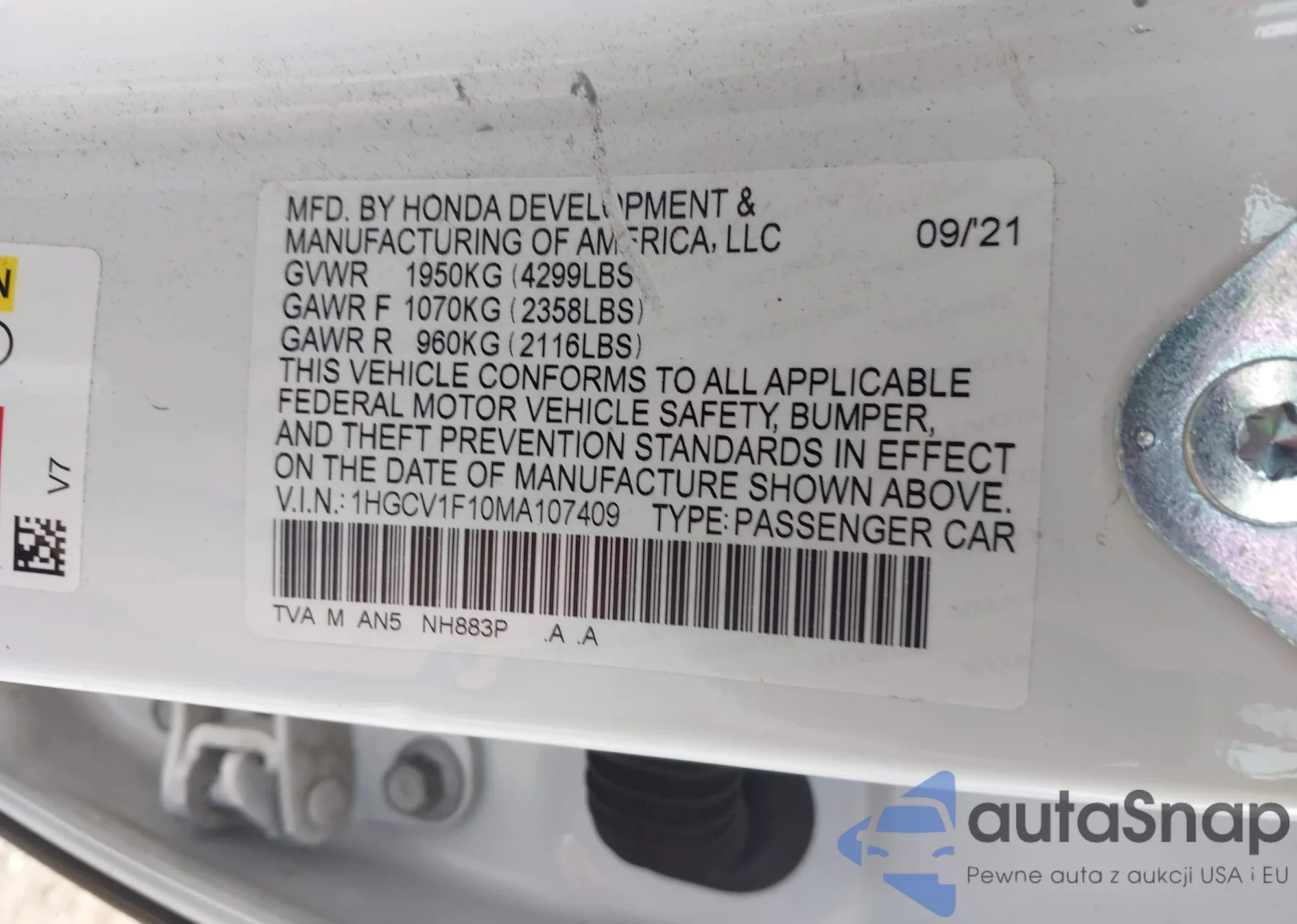 VIN: 1HGCV1F10MA107409