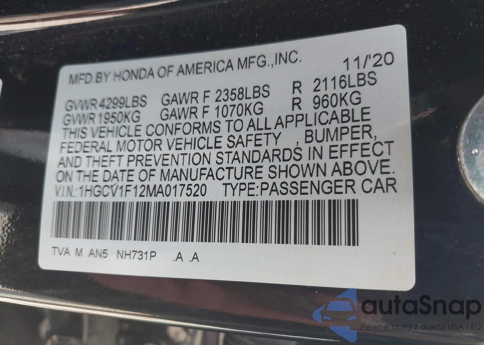 VIN: 1HGCV1F12MA017520