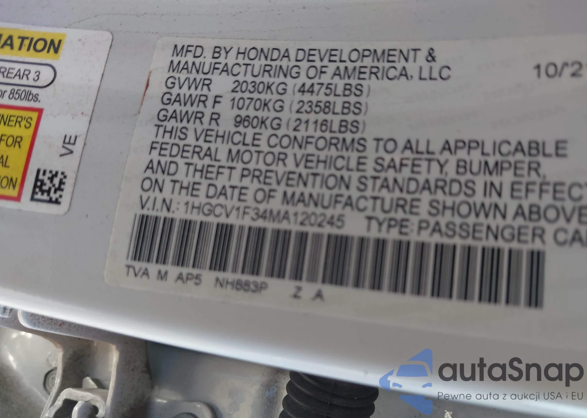 VIN: 1HGCV1F34MA120245