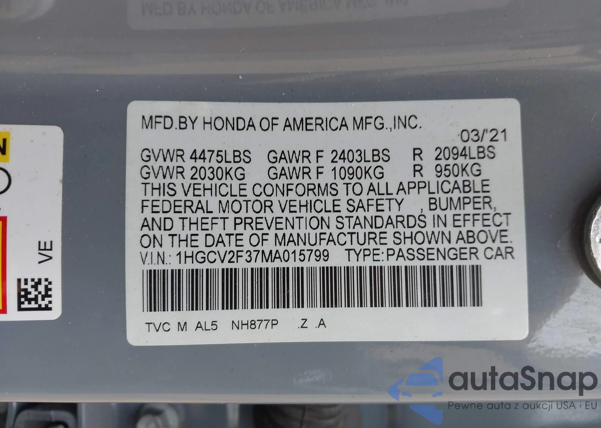 VIN: 1HGCV2F37MA015799