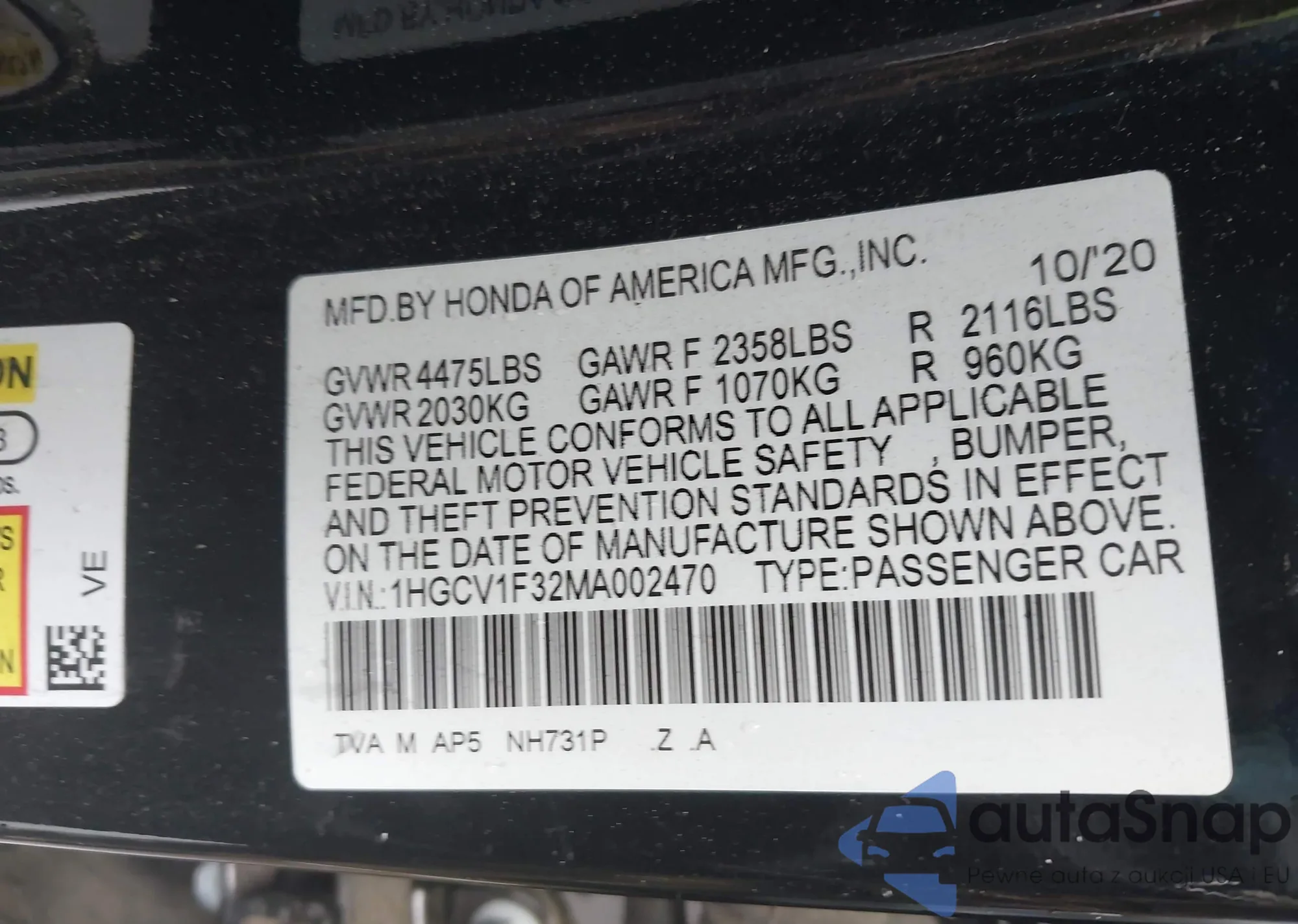 VIN: 1HGCV1F32MA002470