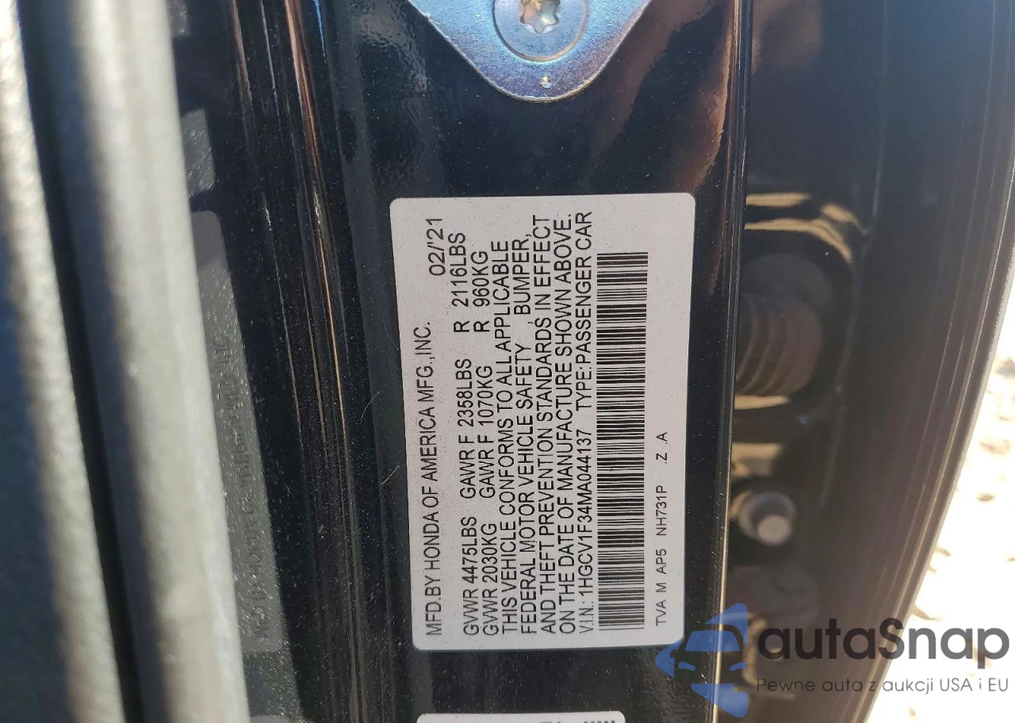 VIN: 1HGCV1F34MA044137