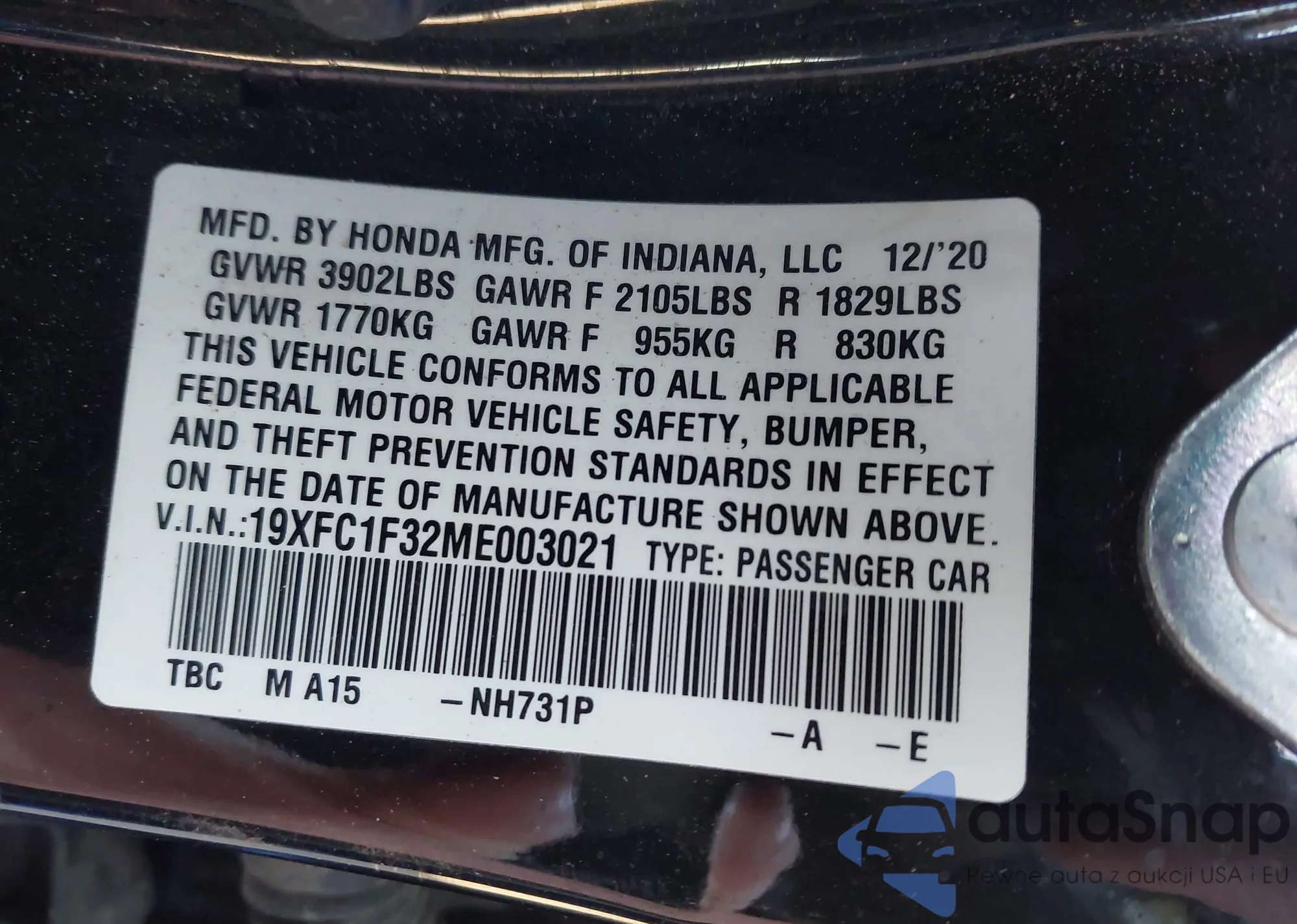 VIN: 19XFC1F32ME003021