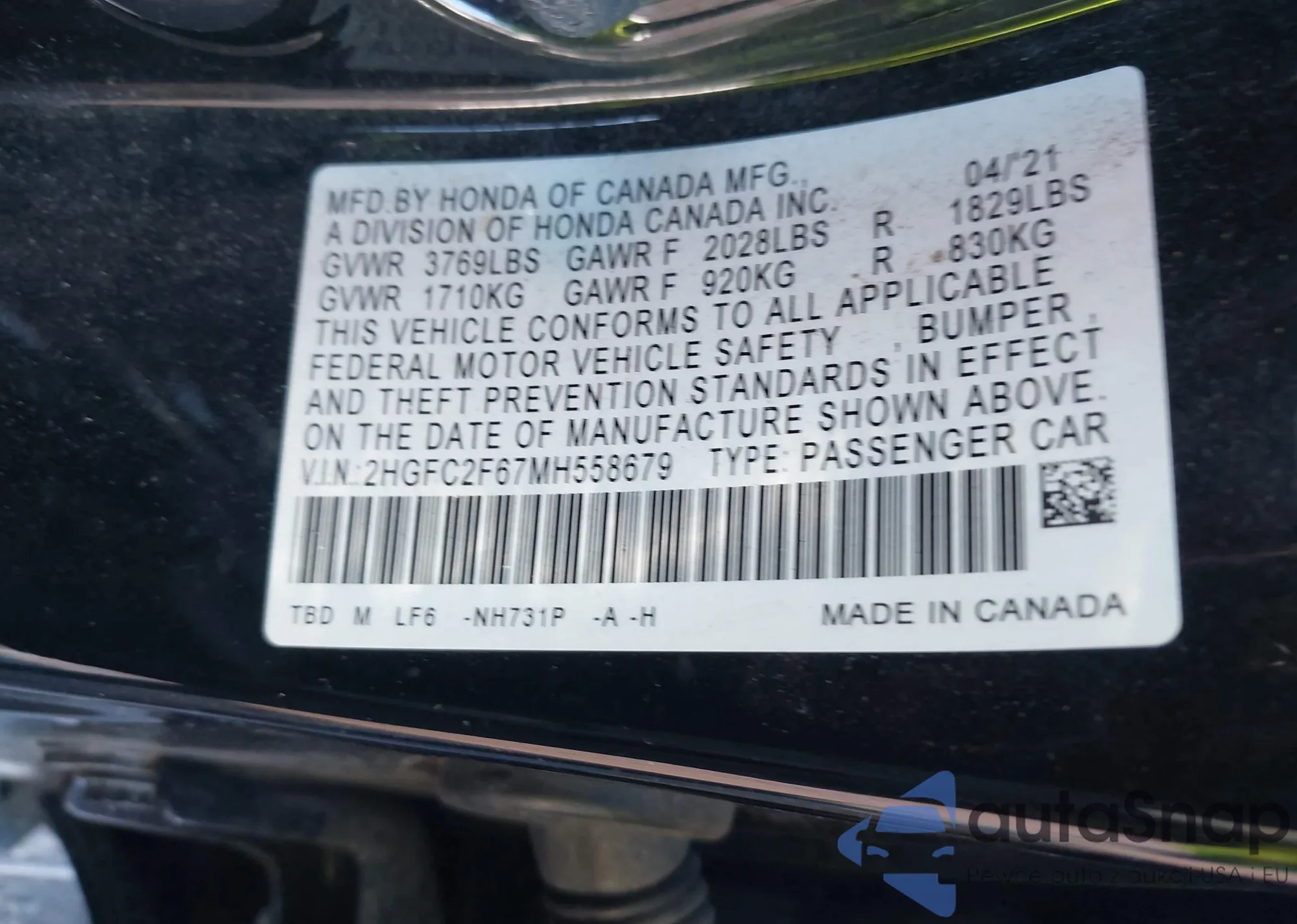 VIN: 2HGFC2F67MH558679