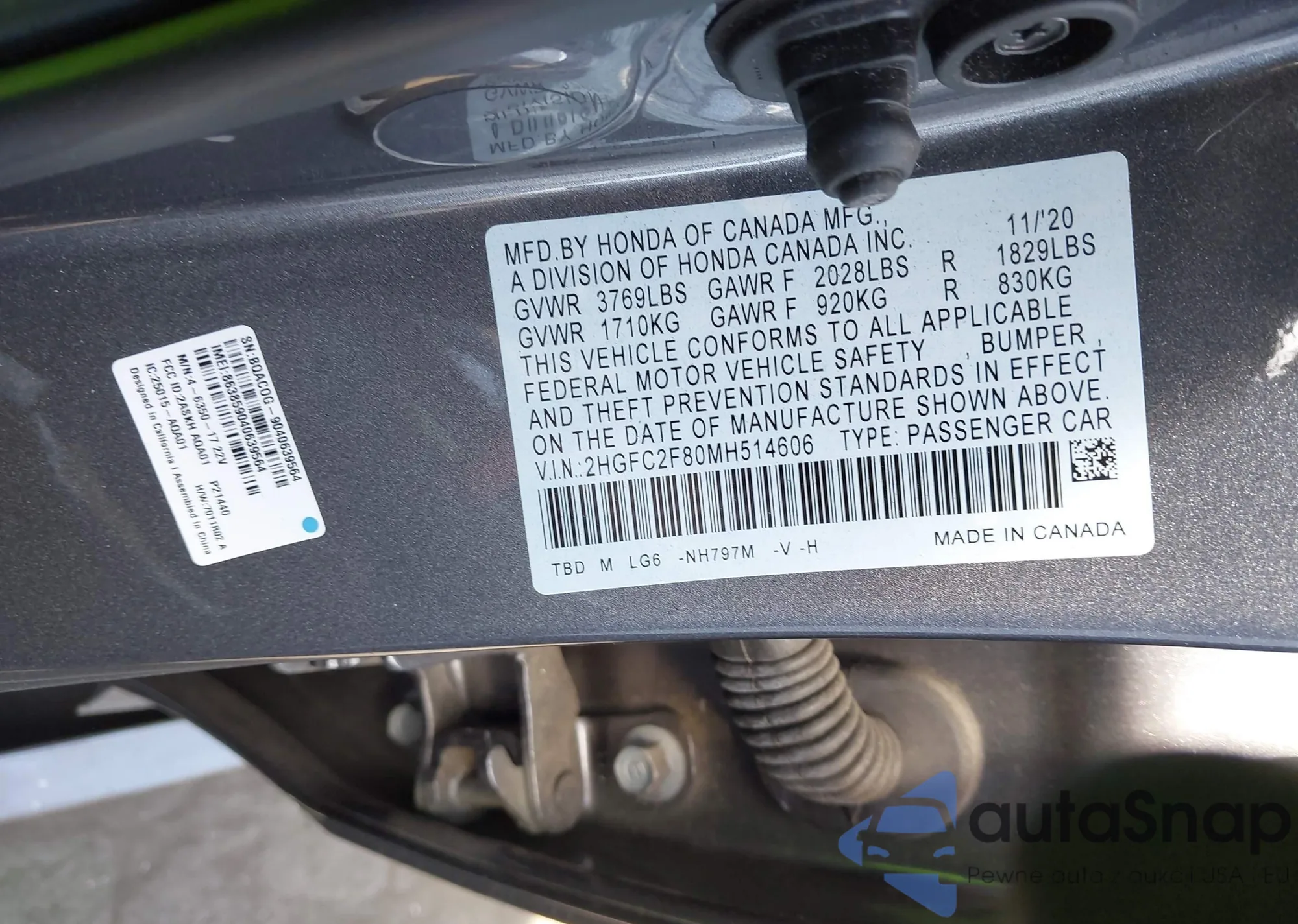 • VIN: 2HGFC2F80MH514606