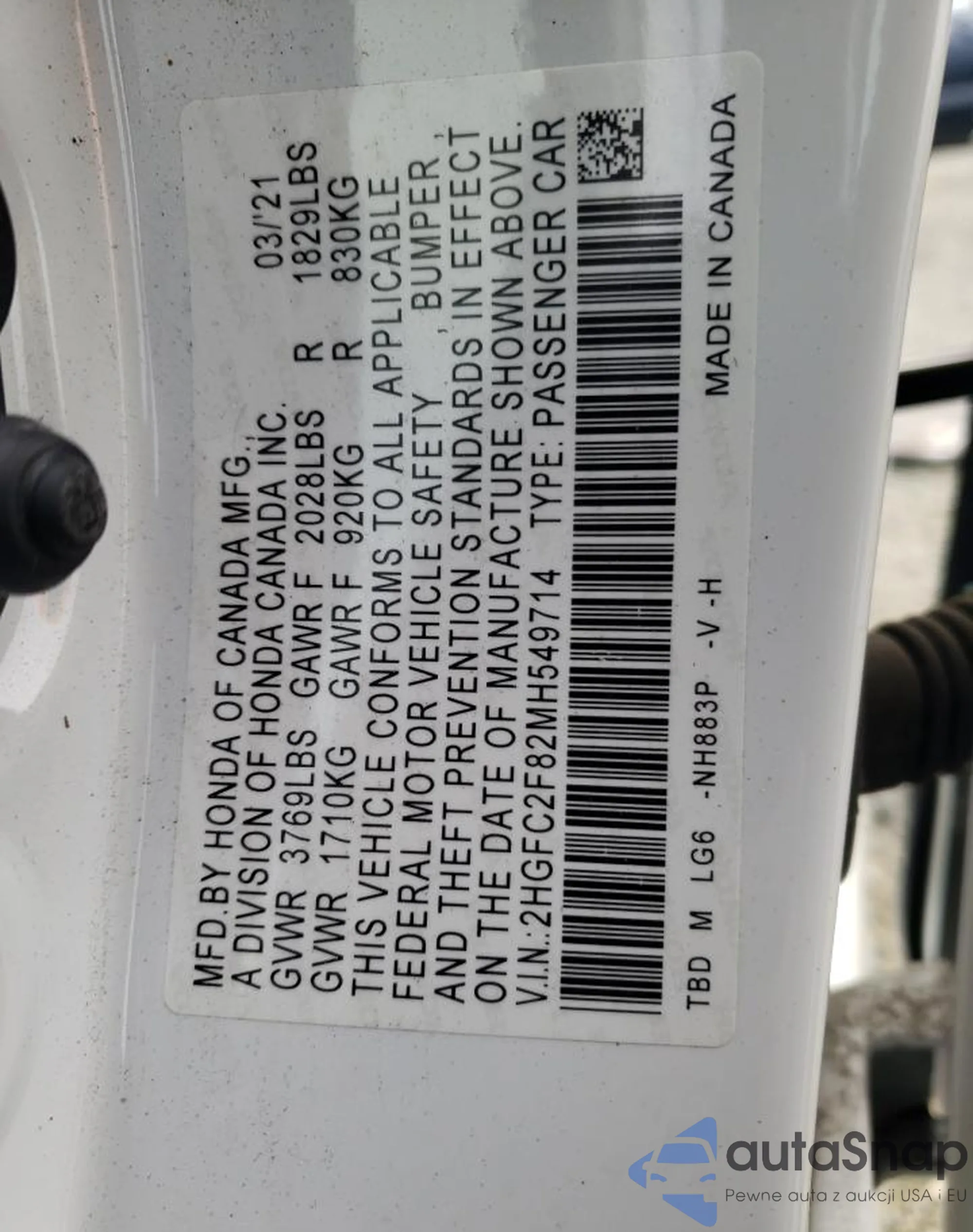 • VIN: 2HGFC2F82MH549714