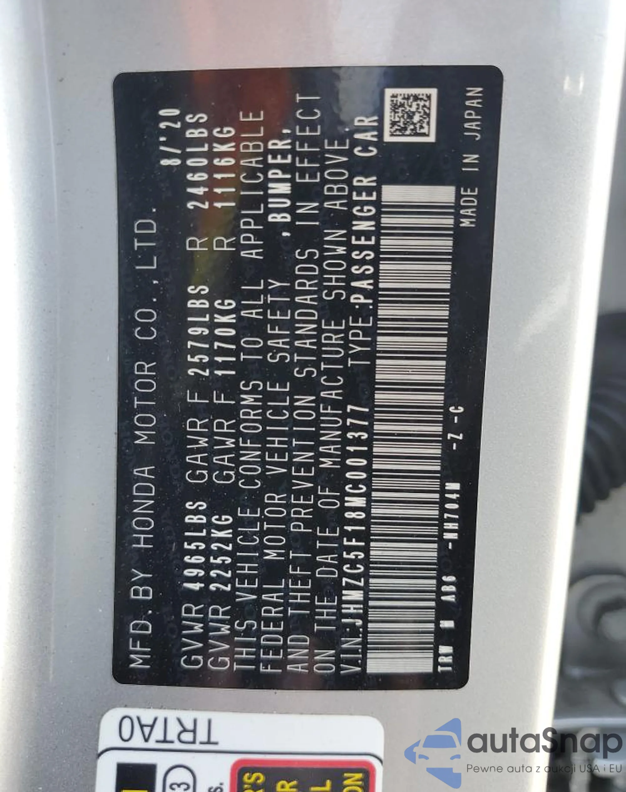 VIN: JHMZC5F18MC001377