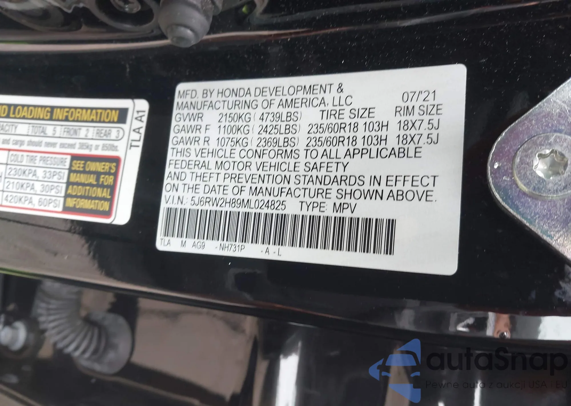 The car Honda CR-V 2021 (VIN 5J6RW2H89ML024825) has not been auctioned before. The documents are clean, and the mileage matches or is below the market average. Sold by an insurance company – we recommend purchase. Delivery to the port will take approx. 6–8 weeks.