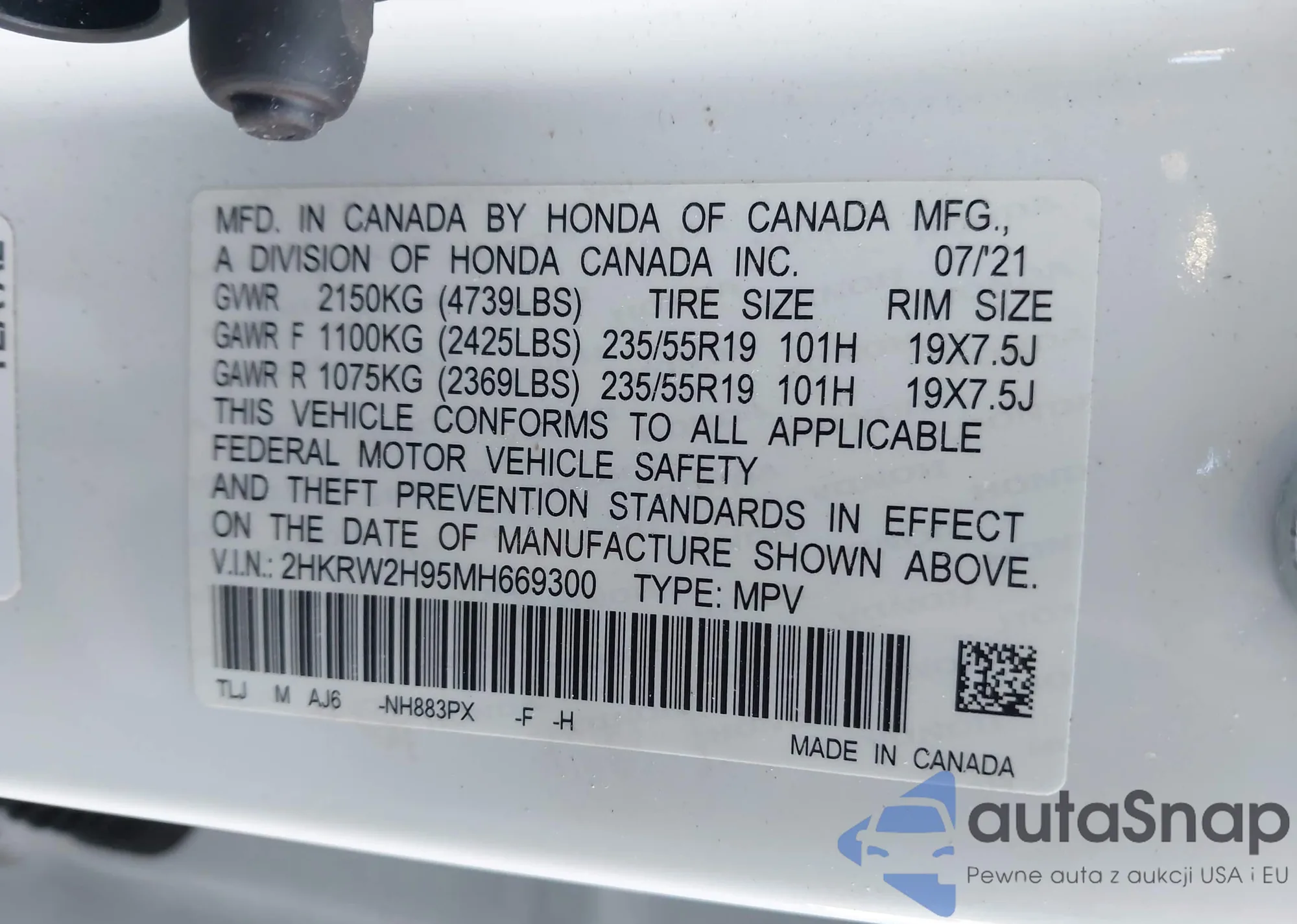 2HKRW2H95MH669300 IAAI