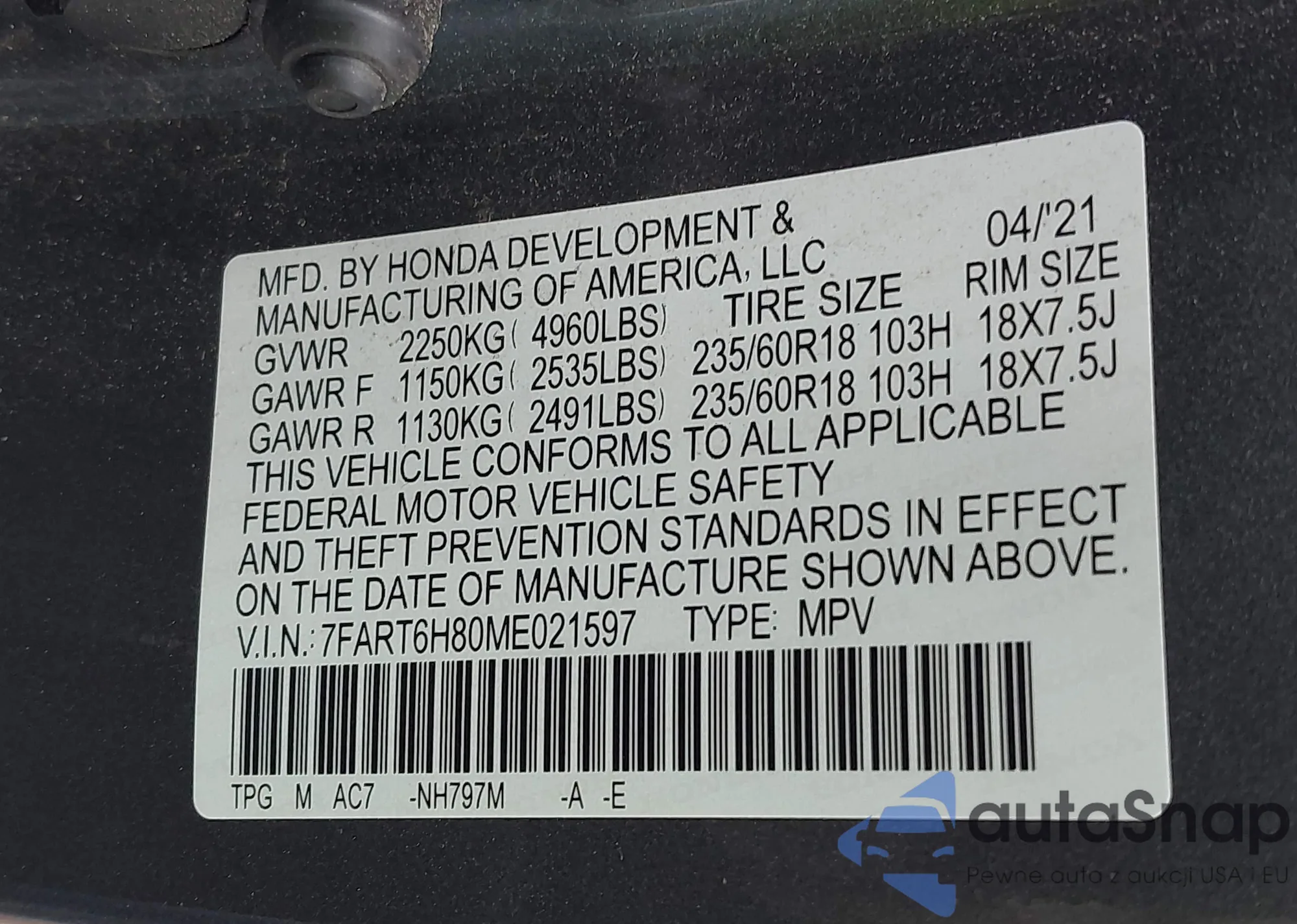 VIN: 7FART6H80ME021597