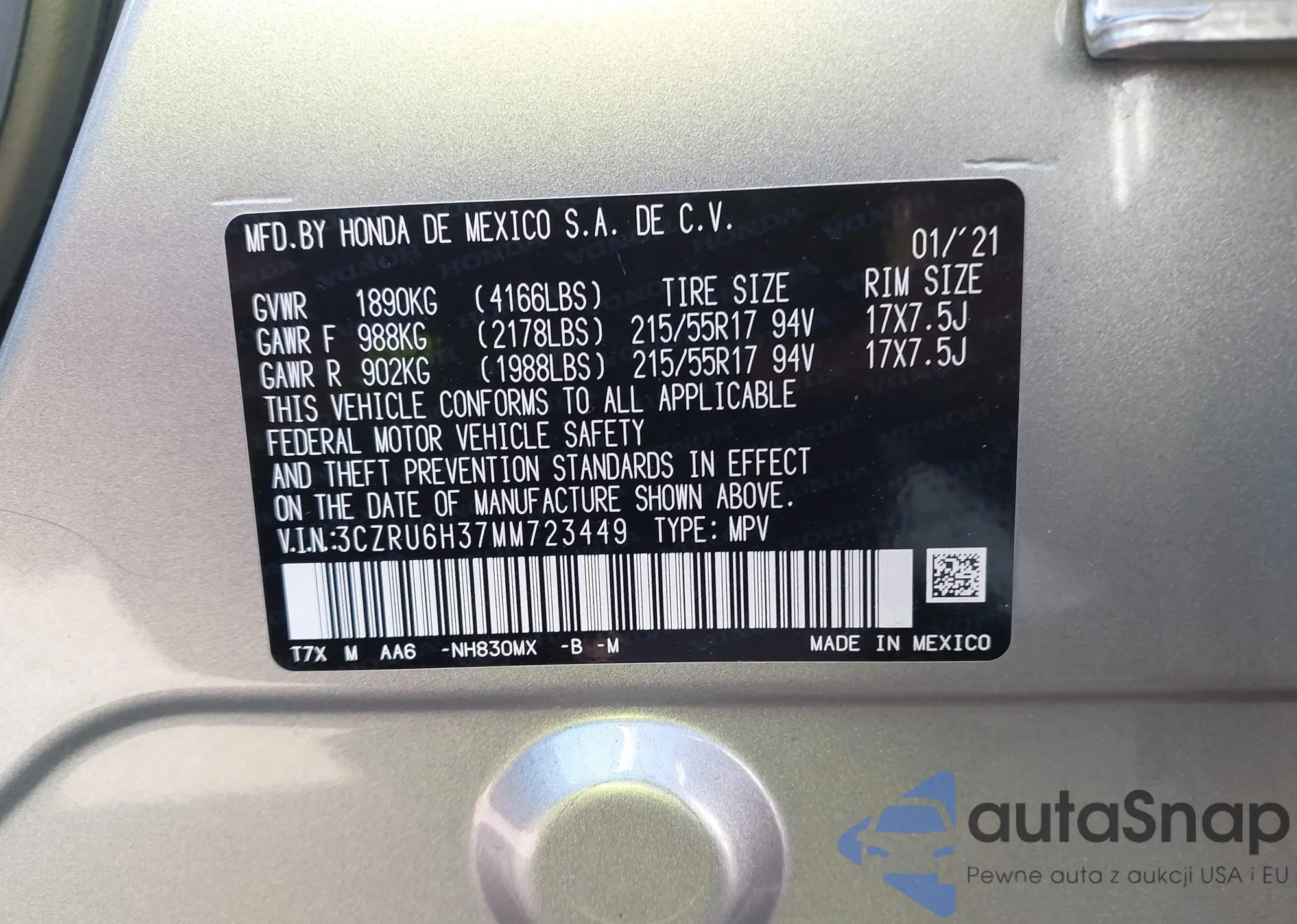 VIN: 3CZRU6H37MM723449
