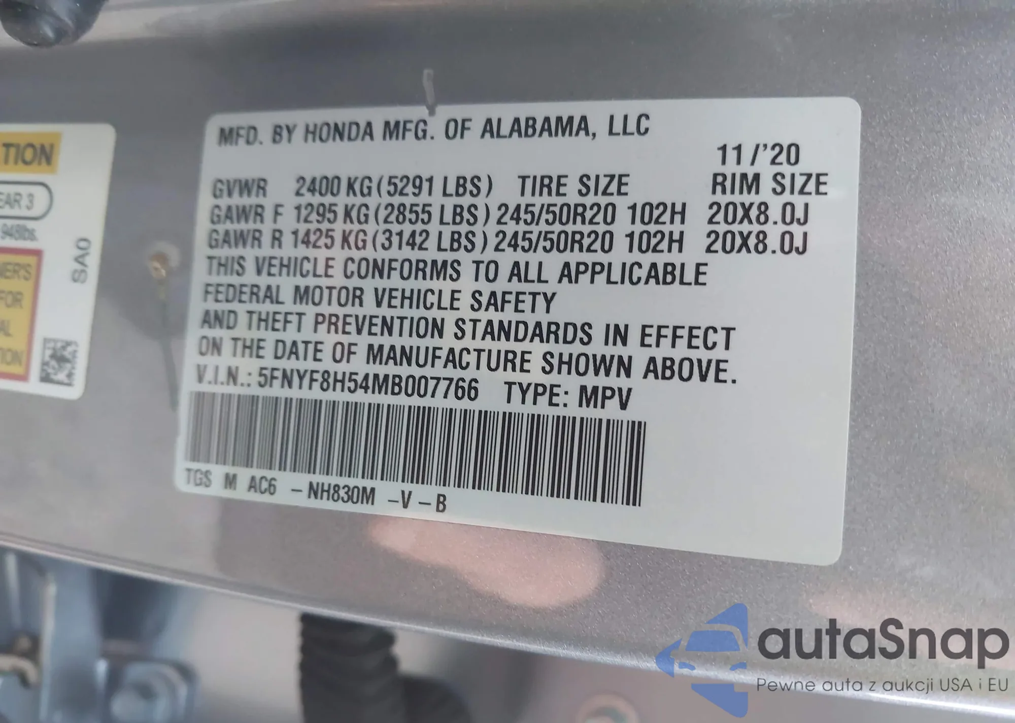 VIN: 5FNYF8H54MB007766