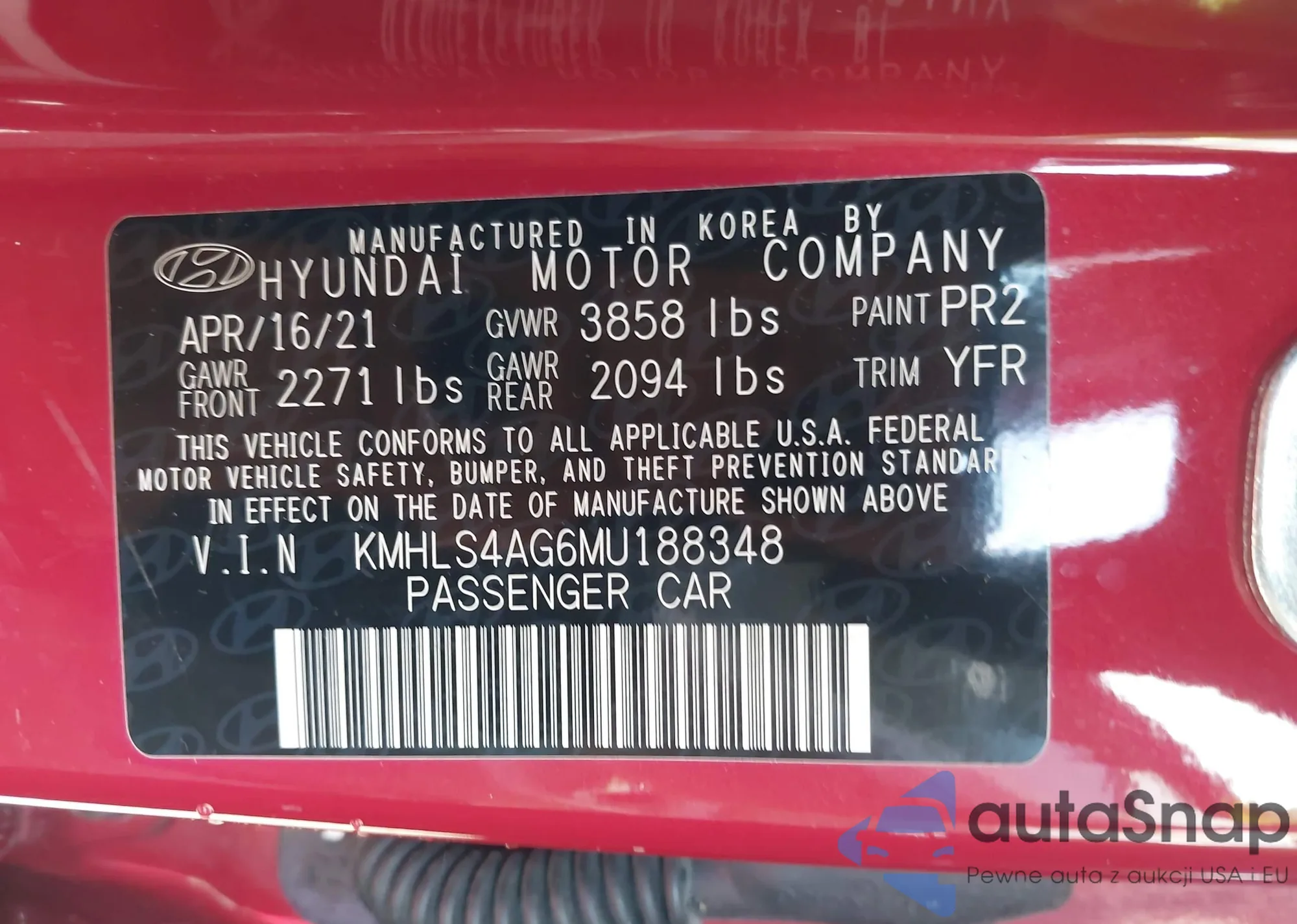 VIN: KMHLS4AG6MU188348