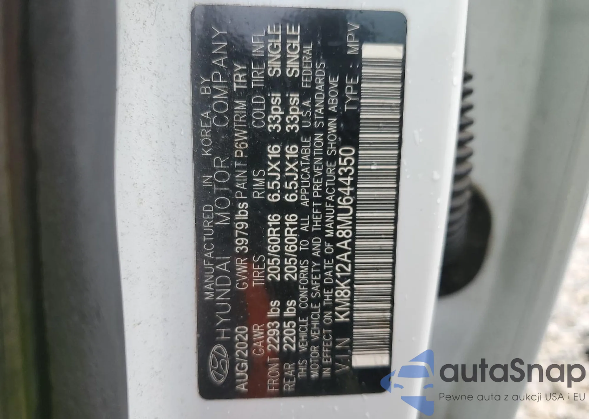VIN: KM8K12AA8MU644350