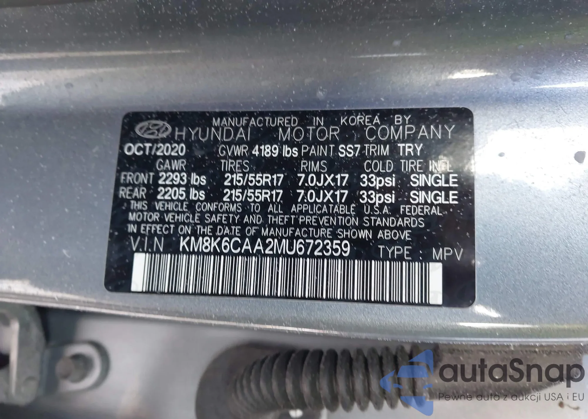 • VIN: KM8K6CAA2MU672359