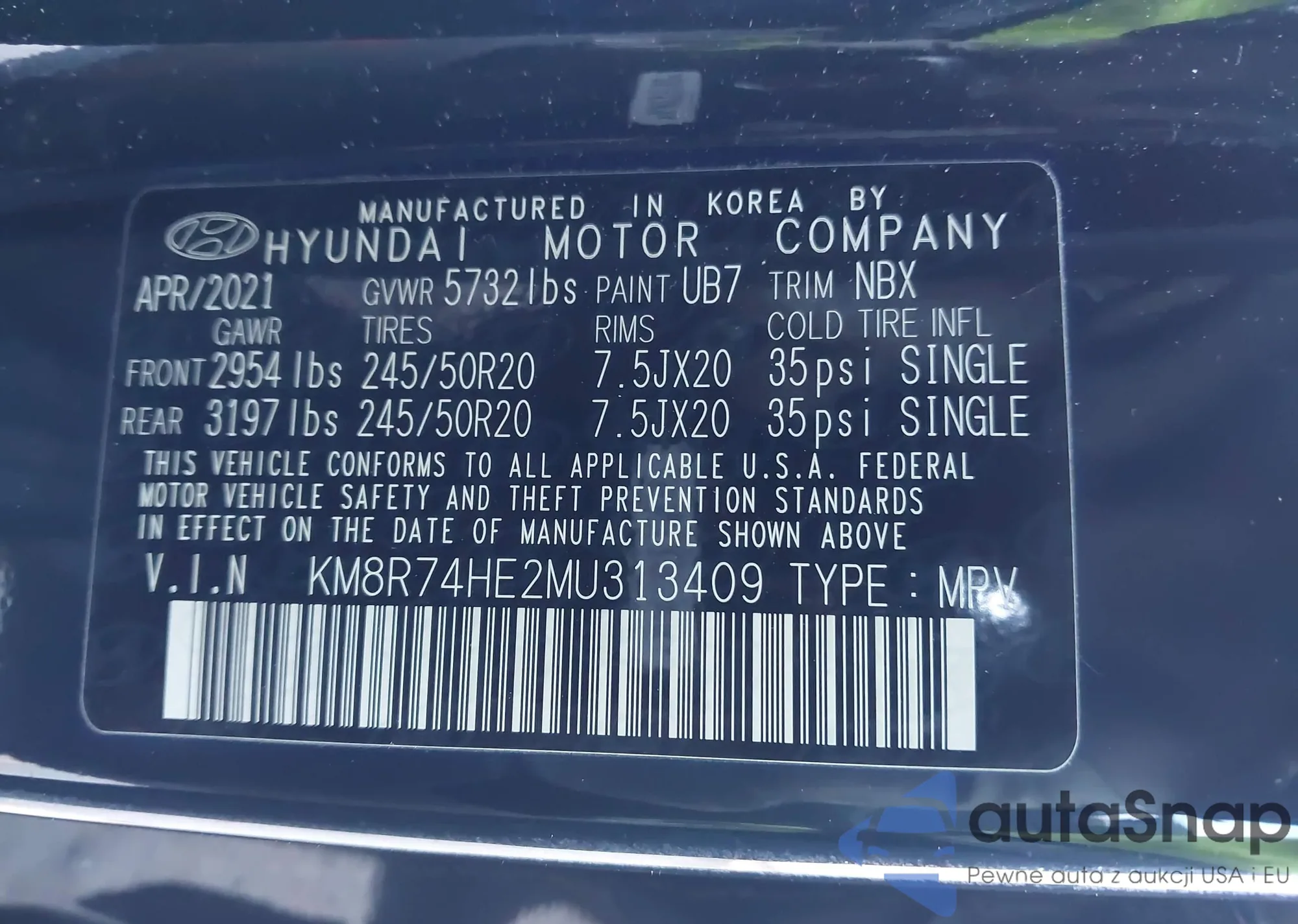 The car Hyundai Palisade 2021 (VIN KM8R74HE2MU313409) has not been auctioned before. The documents are clean, and the mileage matches or is below the market average. Sold by an insurance company – we recommend purchase. Delivery to the port will take approx. 6–8 weeks.