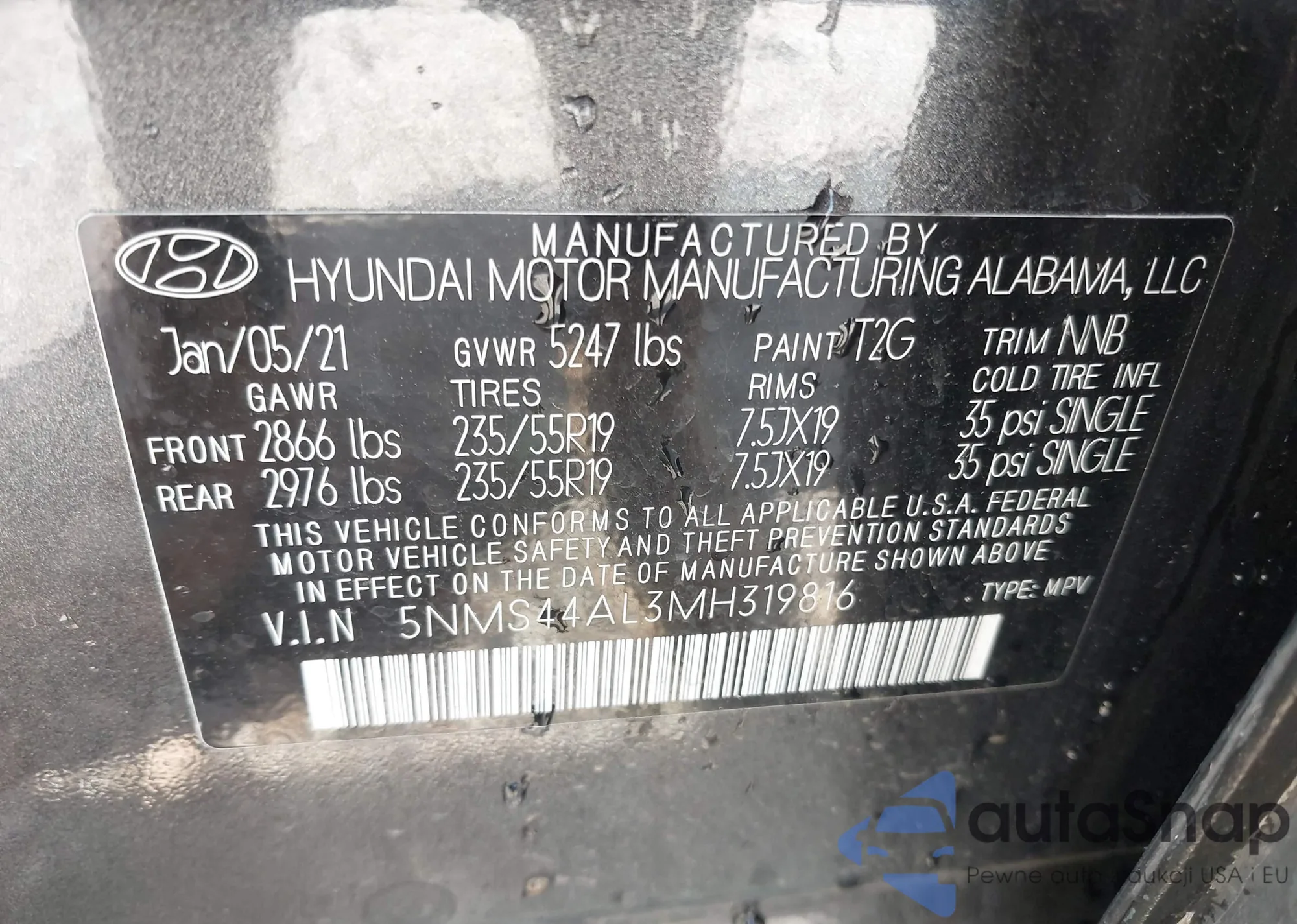 VIN: 5NMS44AL3MH319816