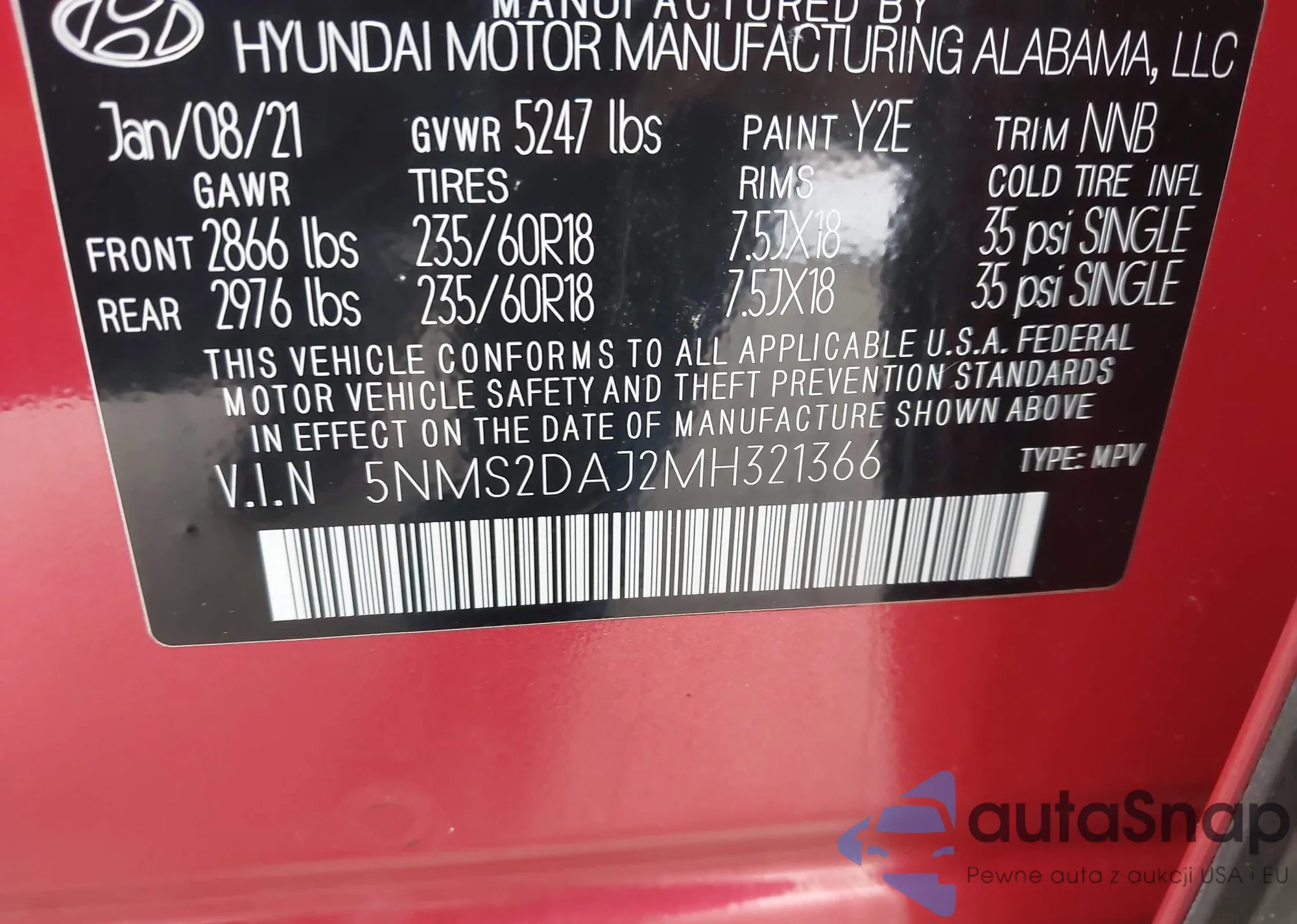 VIN: 5NMS2DAJ2MH321366