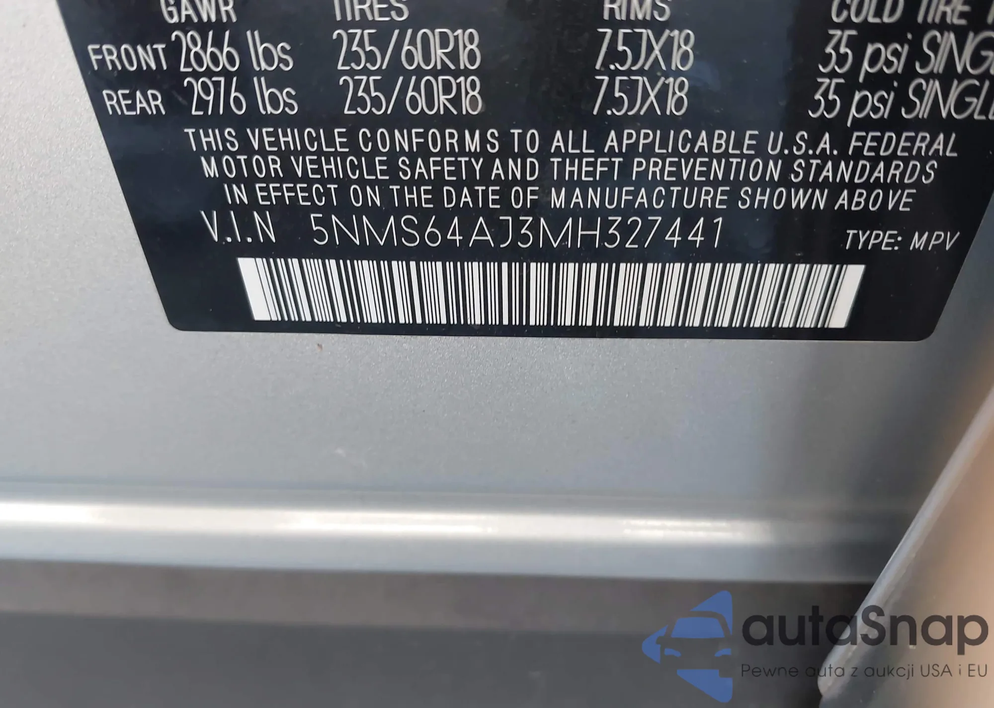 VIN: 5NMS64AJ3MH327441