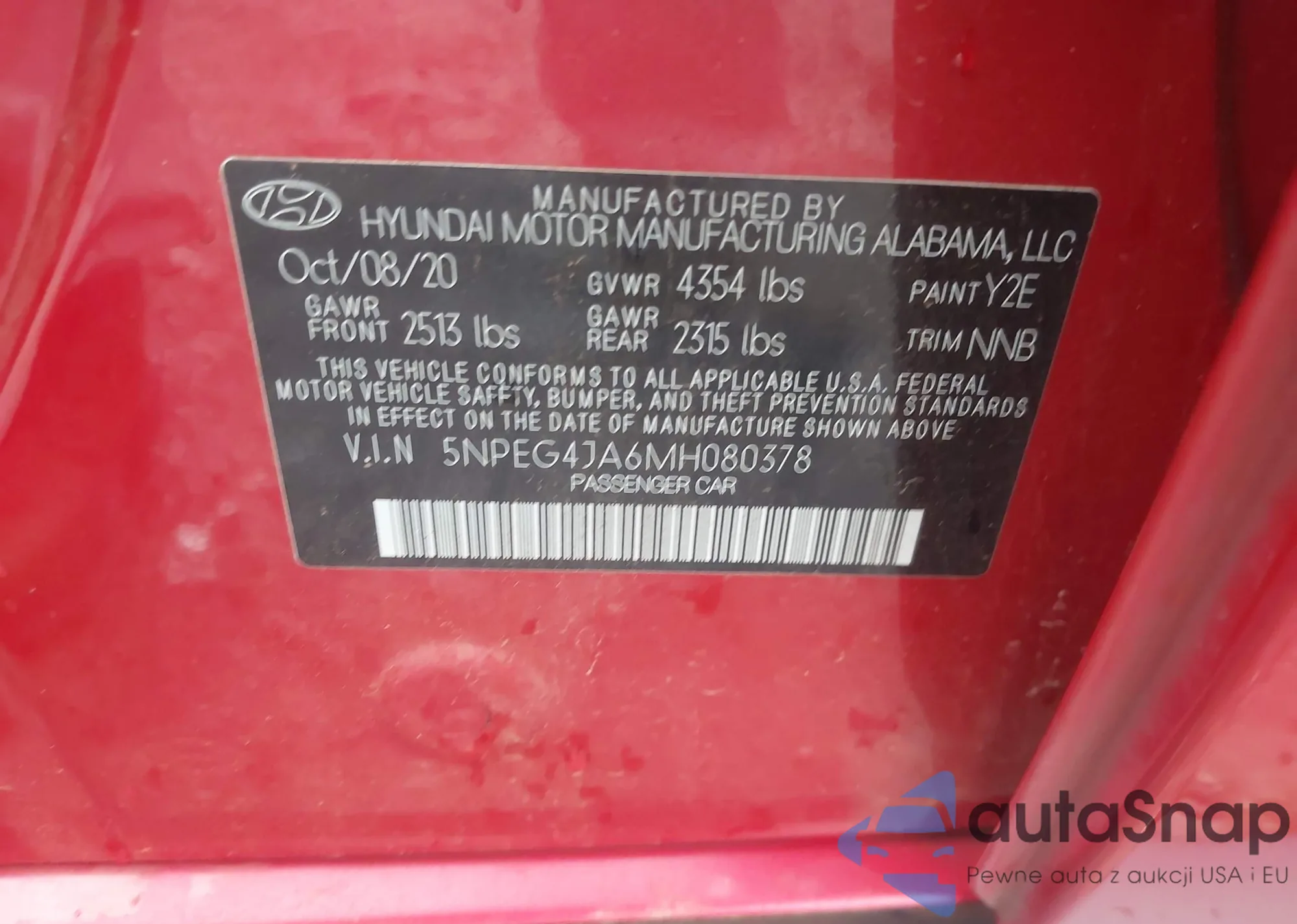 VIN: 5NPEG4JA6MH080378