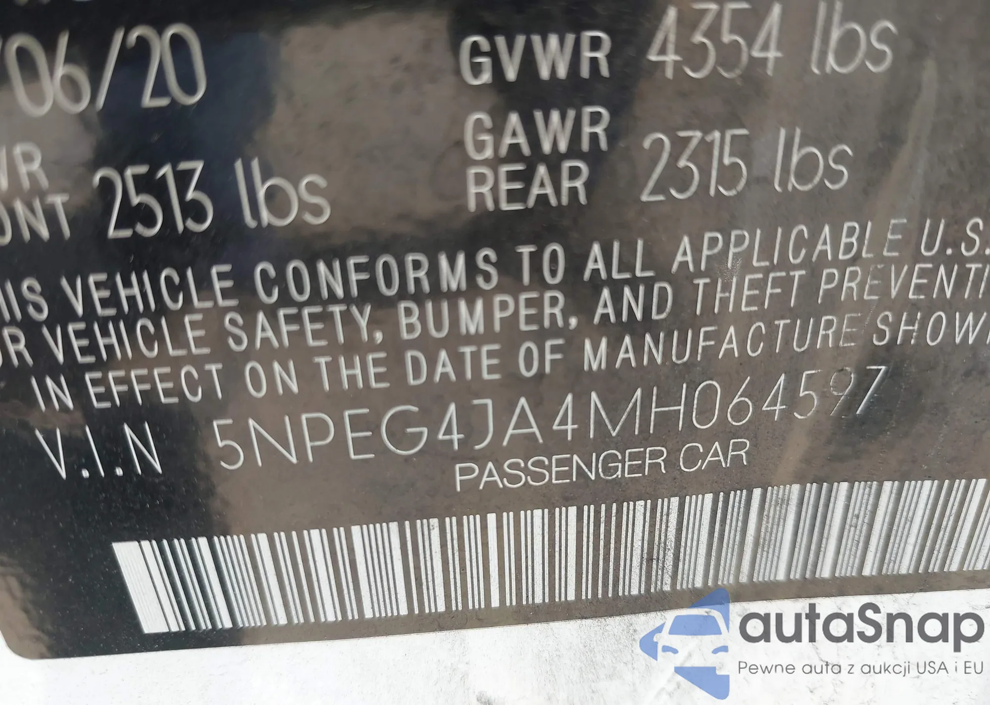 VIN: 5NPEG4JA4MH064597