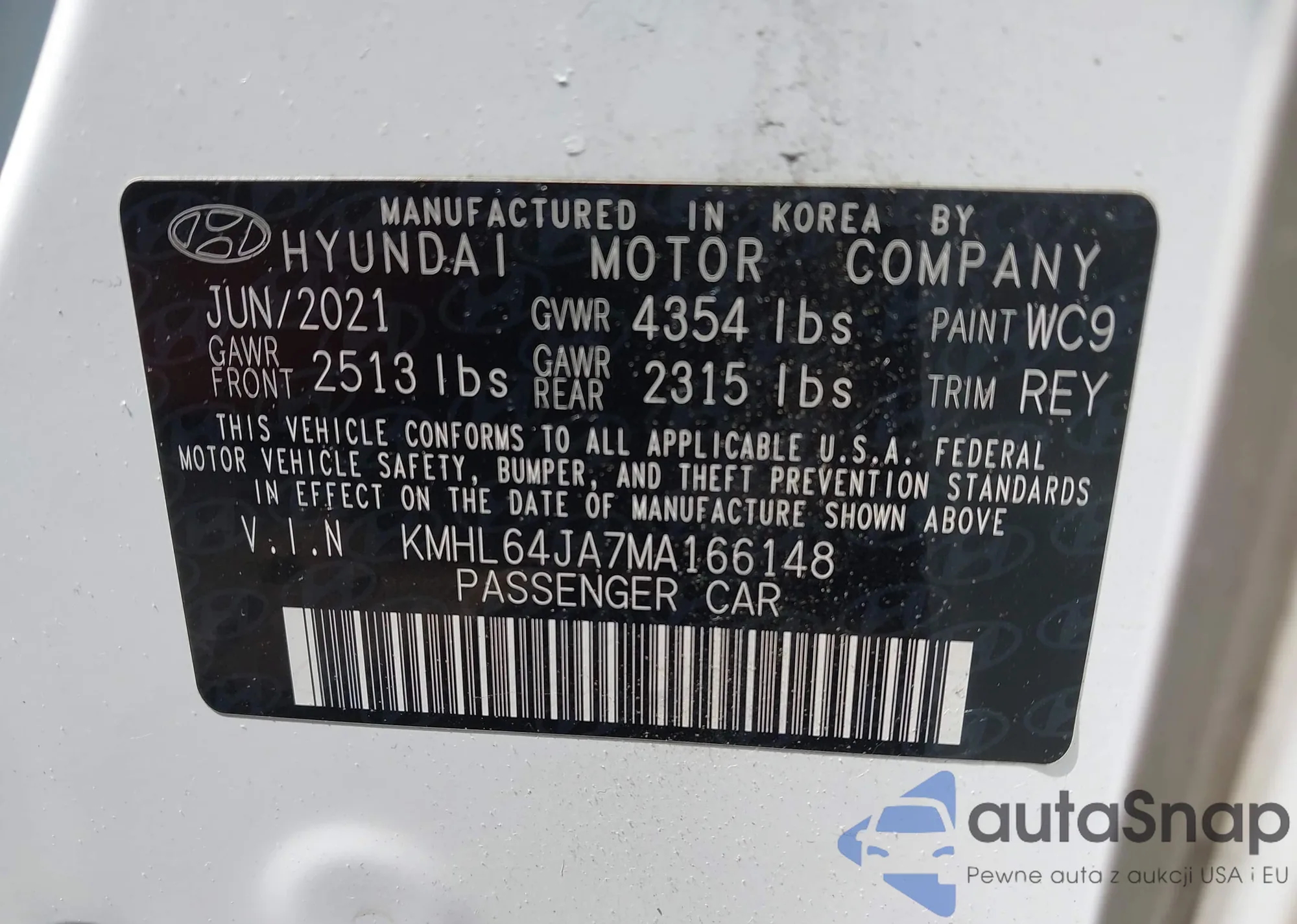 Hyundai Sonata 2021 – Vehicle History (Sold at IAAI)
