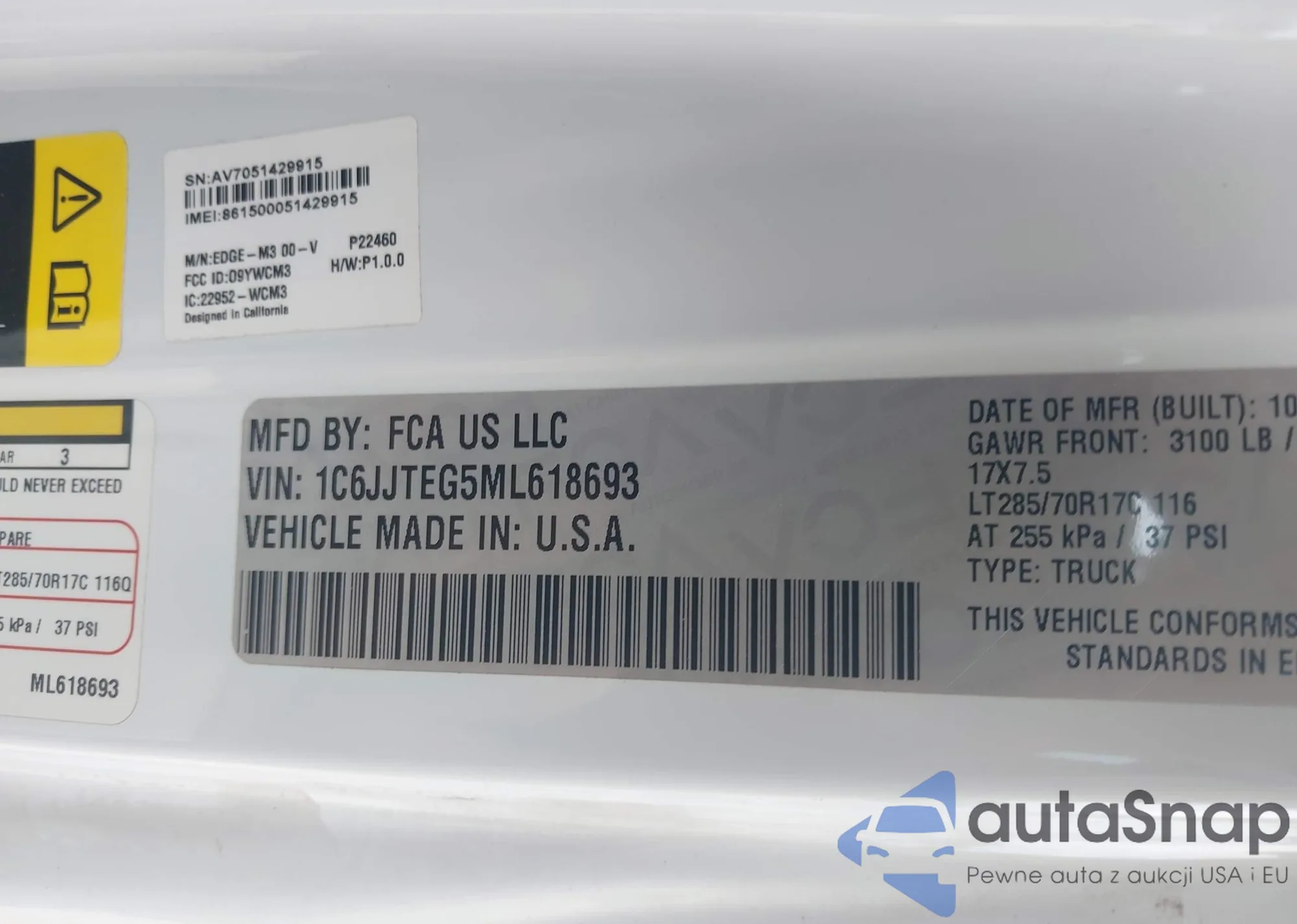 VIN: 1C6JJTEG5ML618693