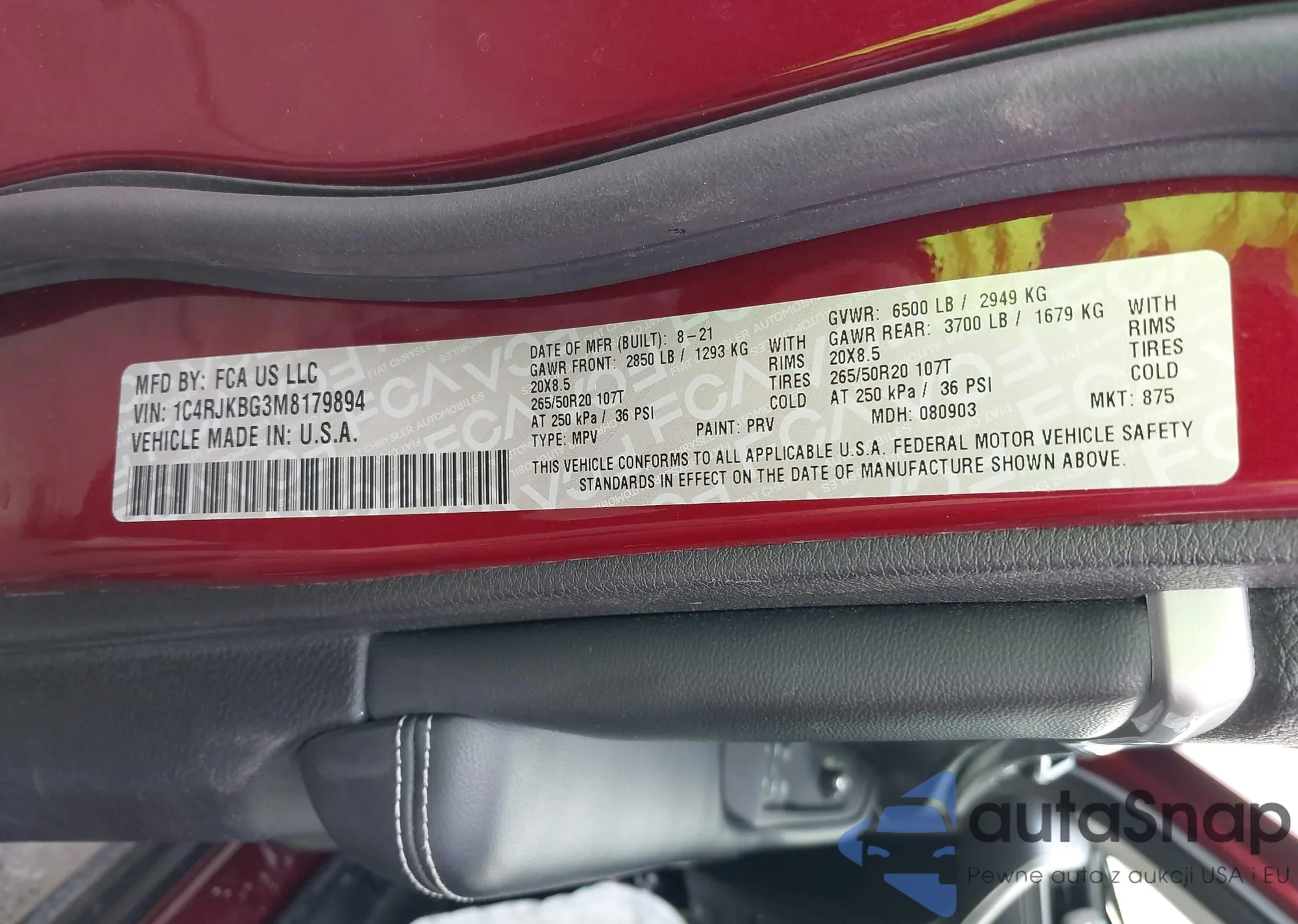 The car Jeep Grand Cherokee 2021 (VIN 1C4RJKBG3M8179894) has not been auctioned before. The documents are clean, and the mileage matches or is below the market average. Sold by an insurance company – we recommend purchase. Delivery to the port will take approx. 6–8 weeks.