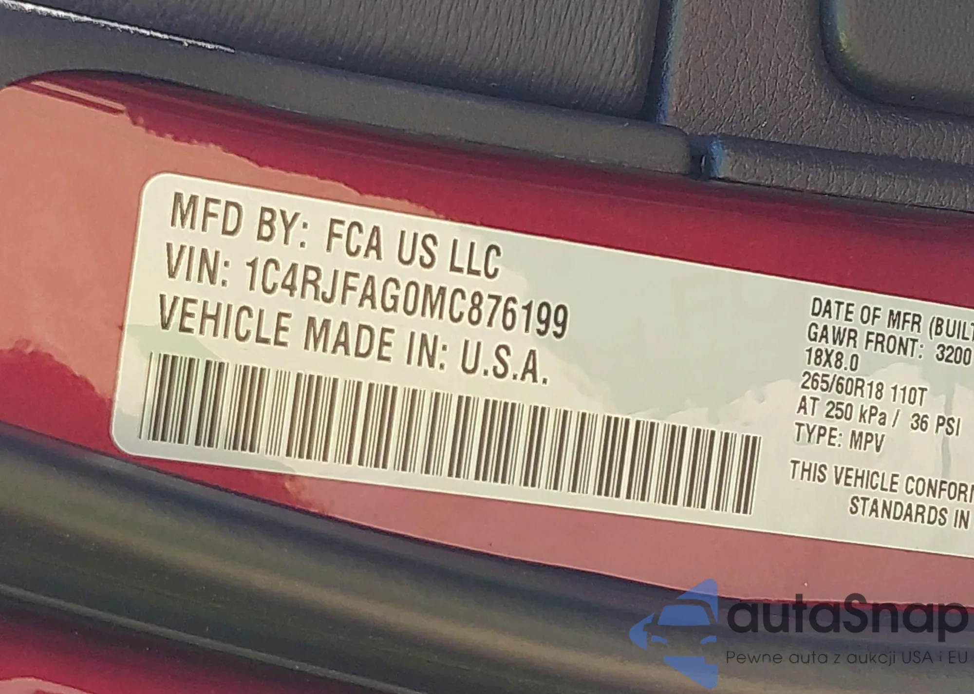 VIN: 1C4RJFAG0MC876199