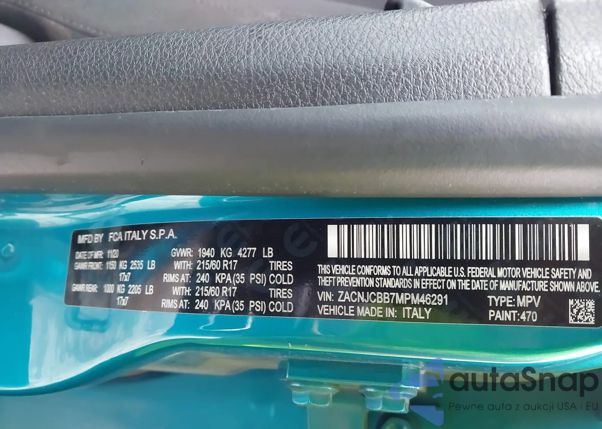 • VIN: ZACNJCBB7MPM46291