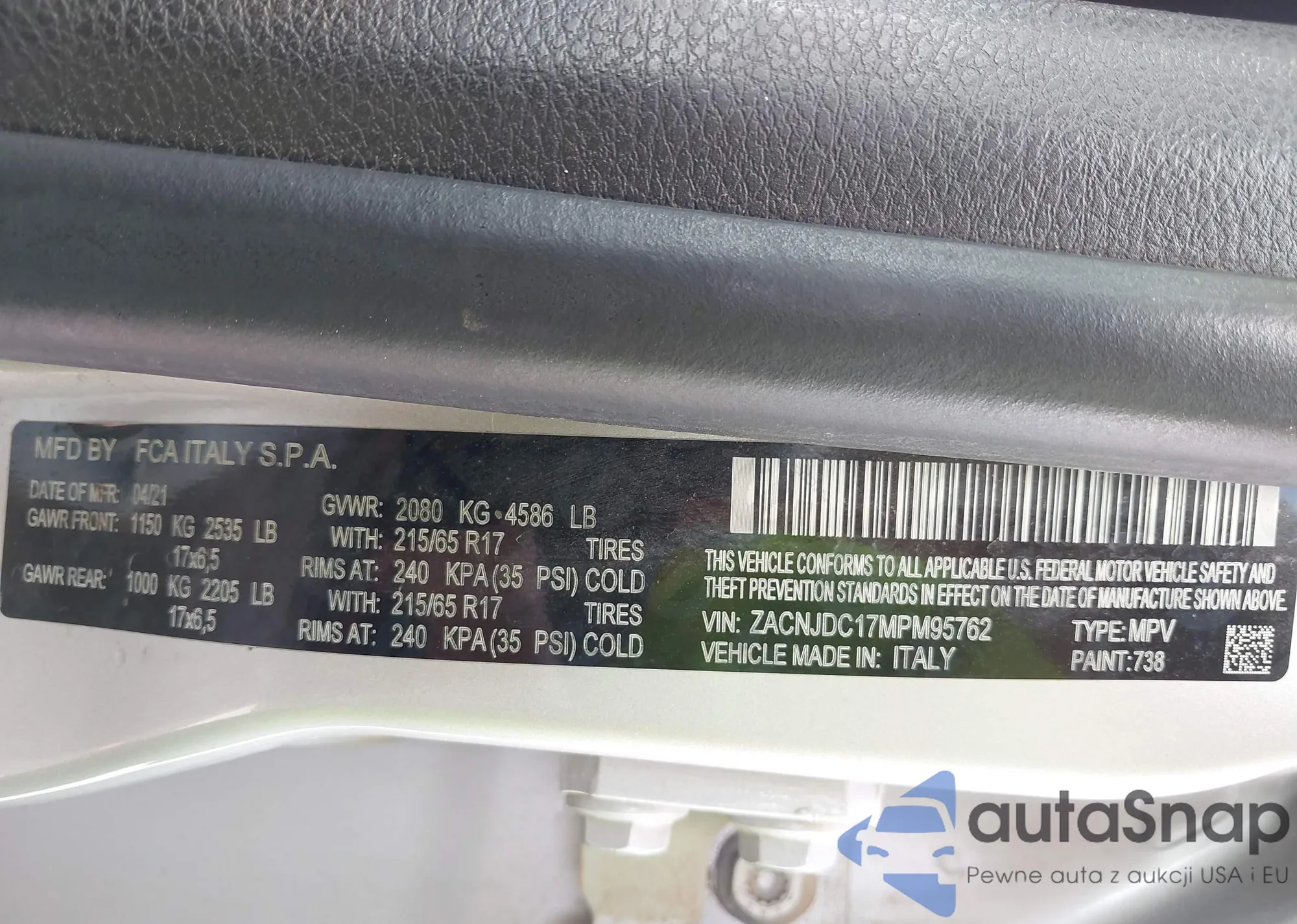 • VIN: ZACNJDC17MPM95762