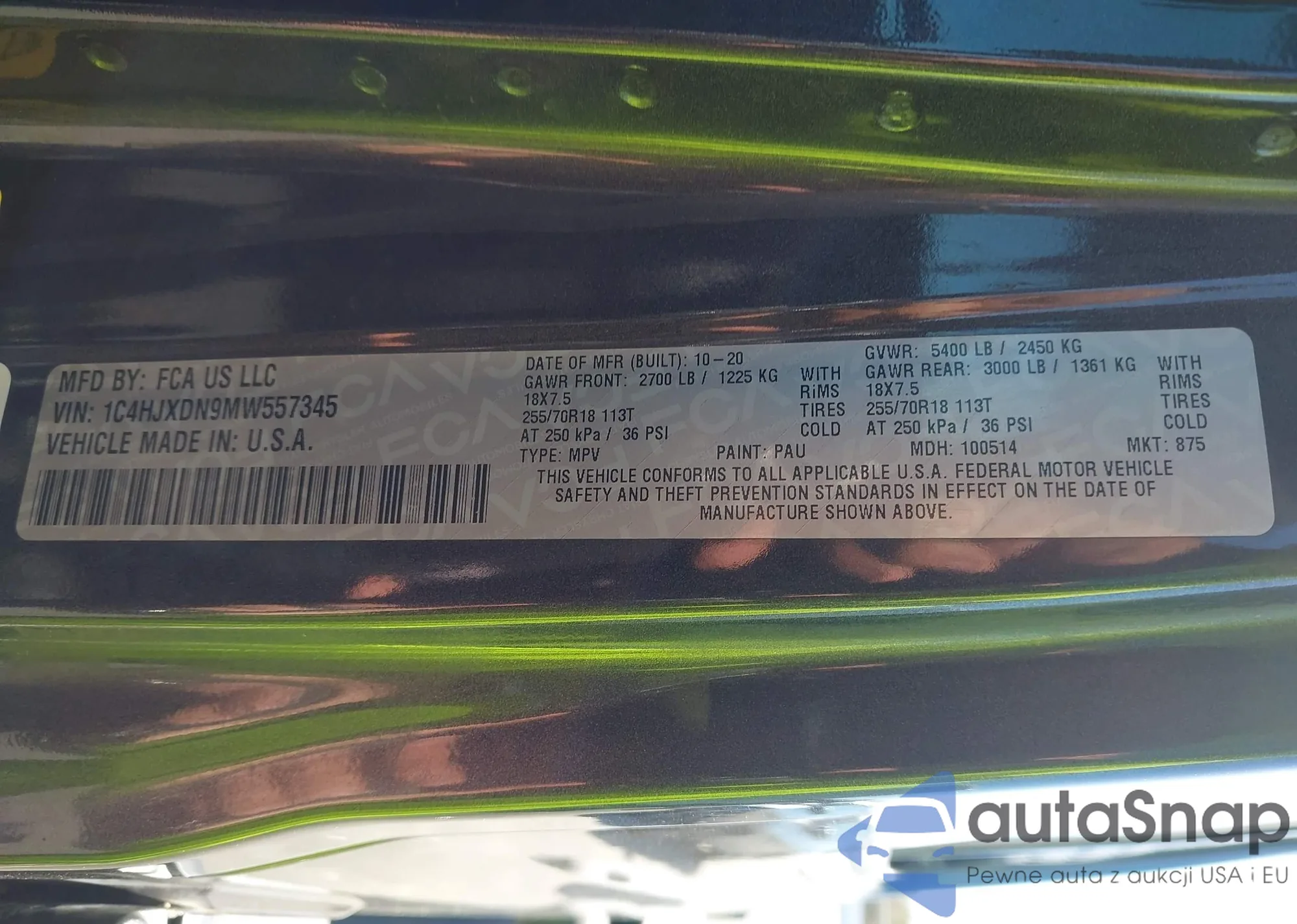 The car Jeep Wrangler 2021 (VIN 1C4HJXDN9MW557345) has already been auctioned 1 times and/or is sold by an unverified seller. We recommend checking the Carfax report and confirming registration possibilities before purchase.
