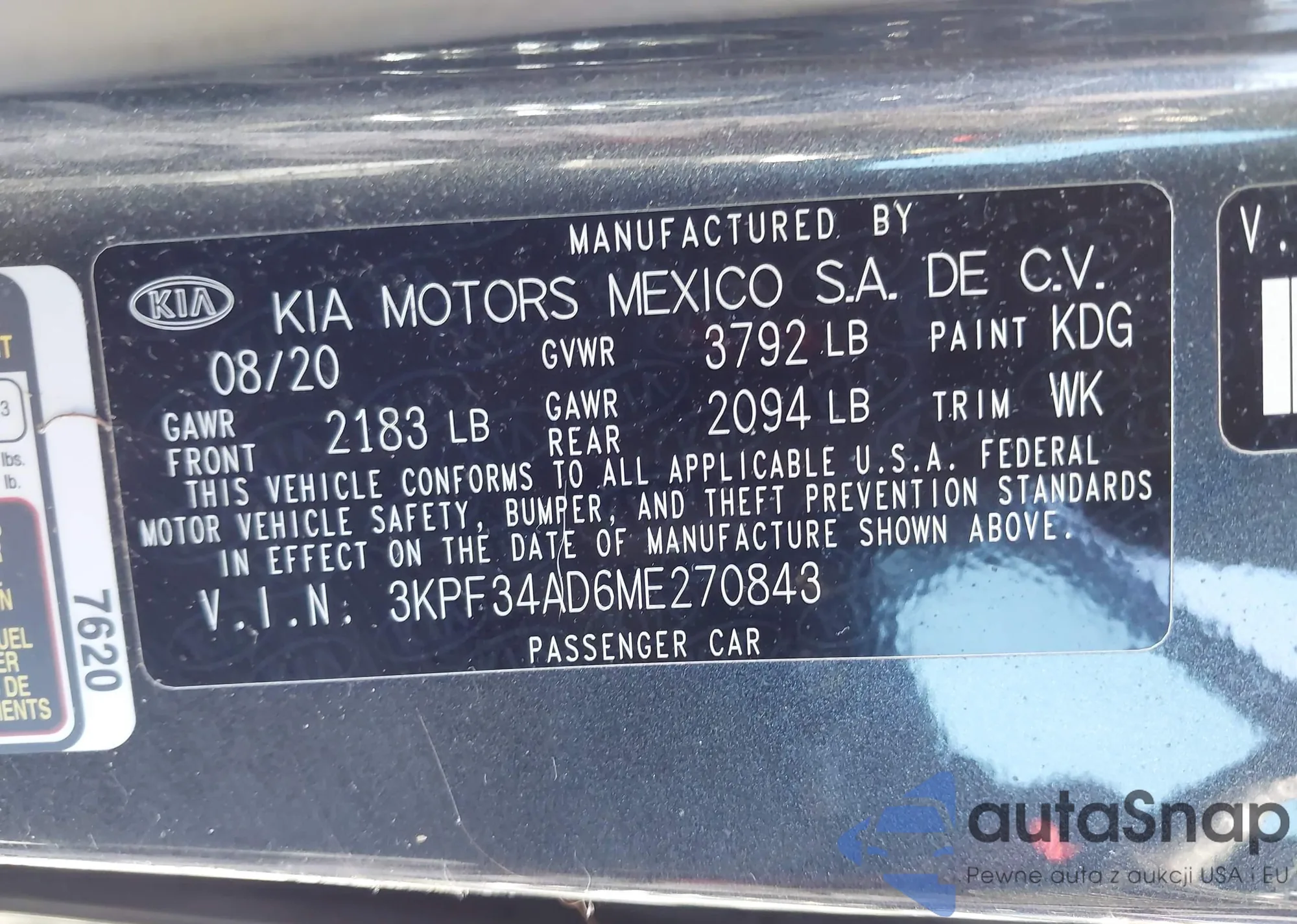 VIN: 3KPF34AD6ME270843