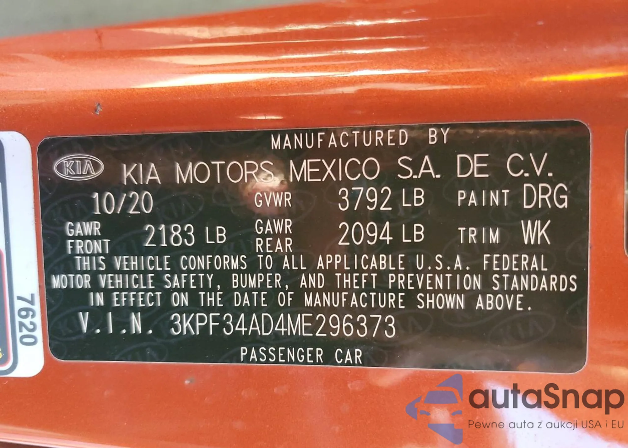 The car Kia Forte 2021 (VIN 3KPF34AD4ME296373) has already been auctioned 0 times or is sold by an unverified seller. We recommend checking the Carfax report and confirming registration possibilities before purchase.