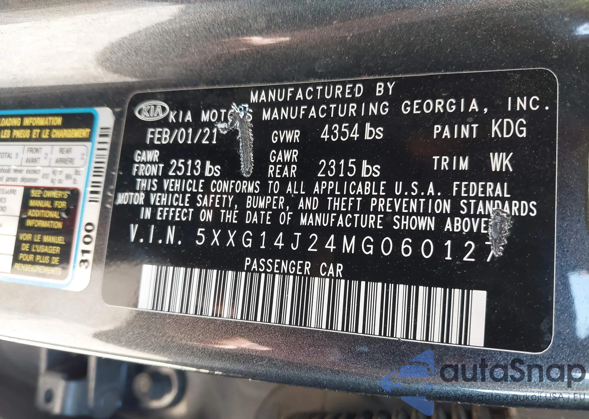 The car Kia K5 2021 (VIN 5XXG14J24MG060127) has not been auctioned before. The documents are clean, and the mileage matches or is below the market average. Sold by an insurance company – we recommend purchase. Delivery to the port will take approx. 6–8 weeks.