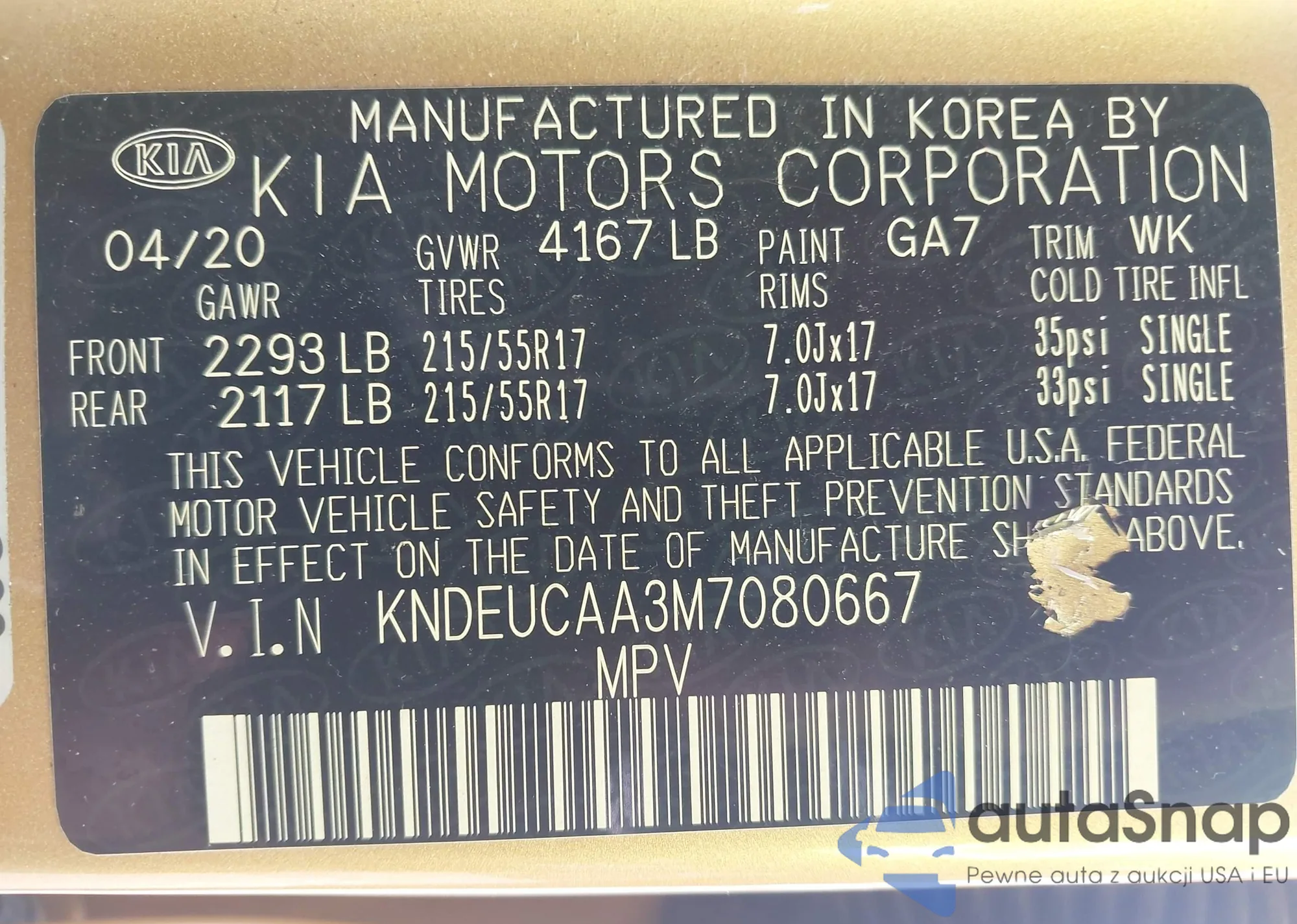 VIN: KNDEUCAA3M7080667