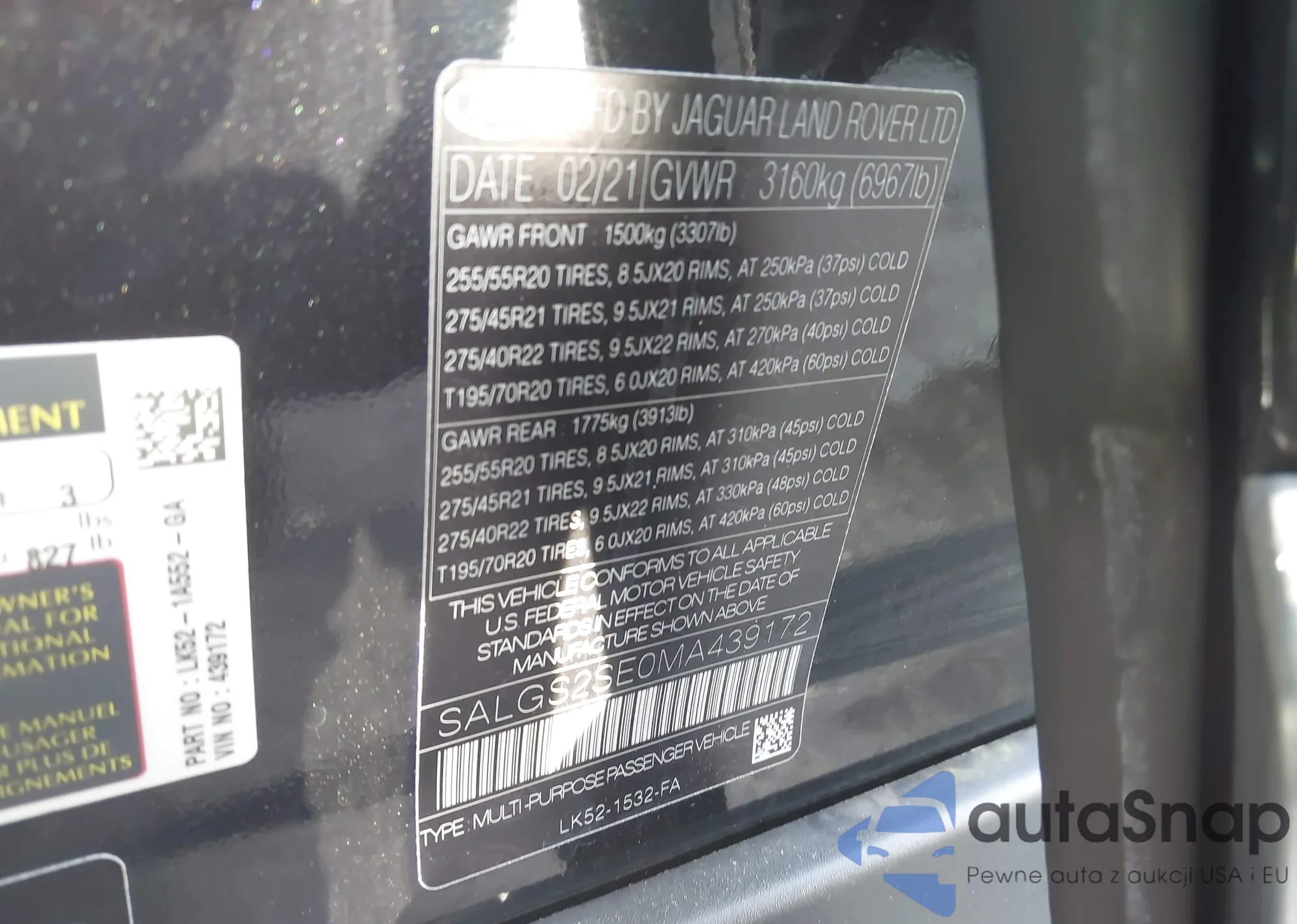 • VIN: SALGS2SE0MA439172