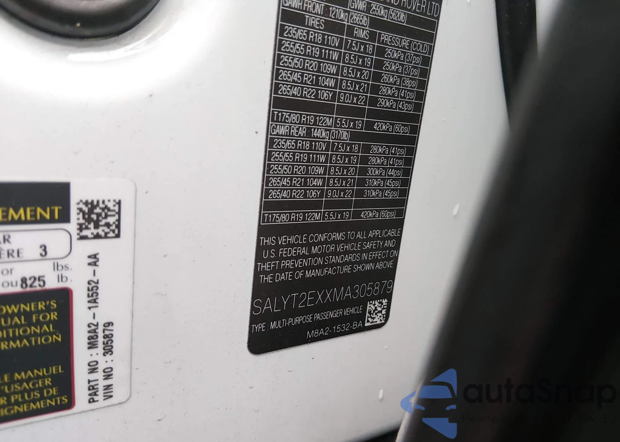 • VIN: SALYT2EXXMA305879