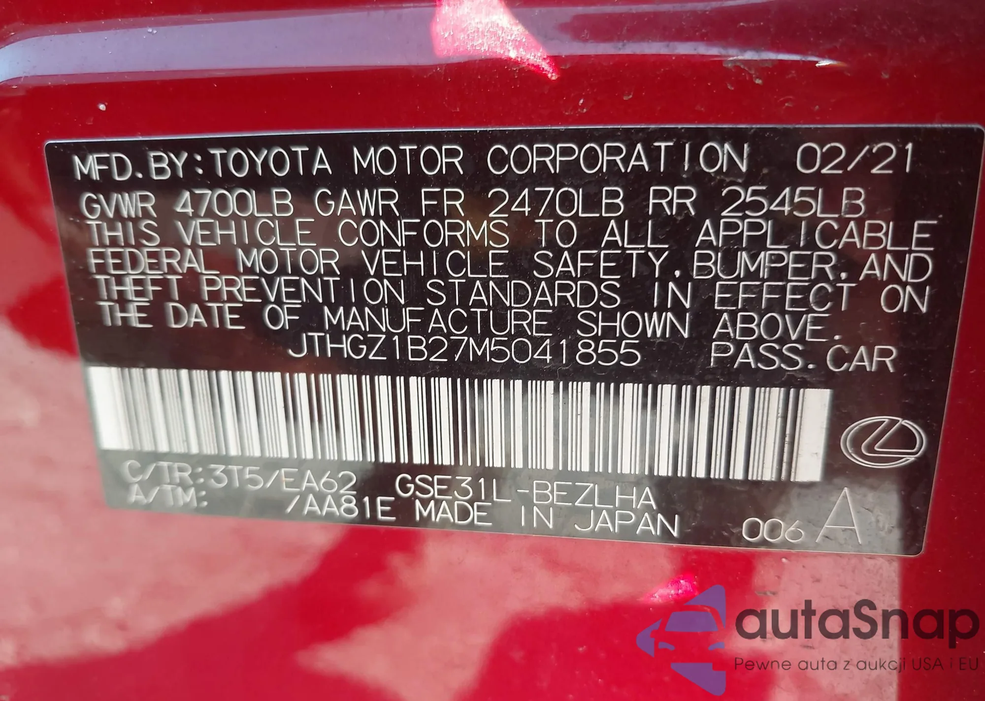 VIN: JTHGZ1B27M5041855