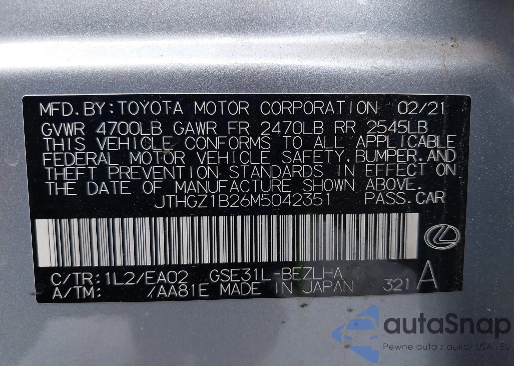 VIN: JTHGZ1B26M5042351