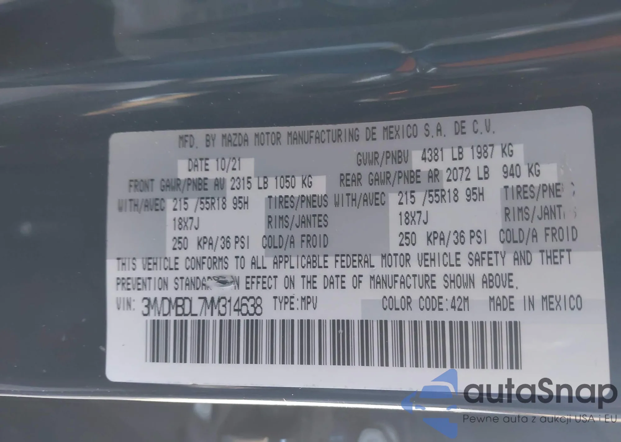 • VIN: 3MVDMBDL7MM314638