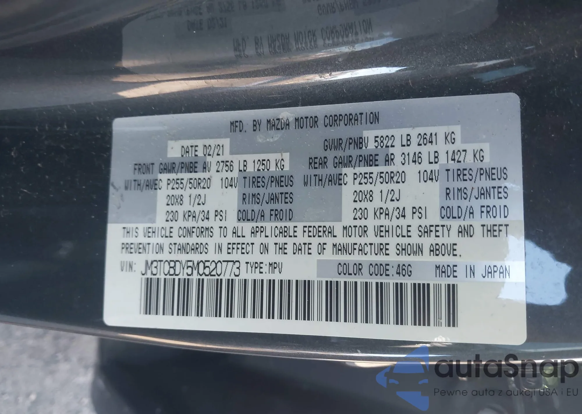 • VIN: JM3TCBDY5M0520773
