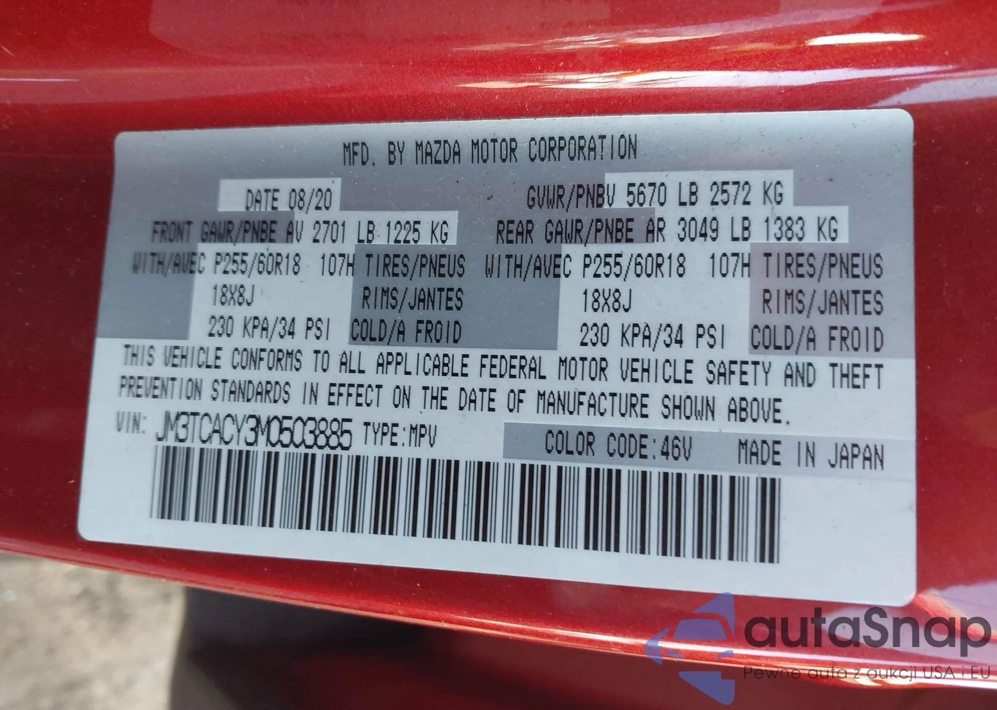 VIN: JM3TCACY3M0503885