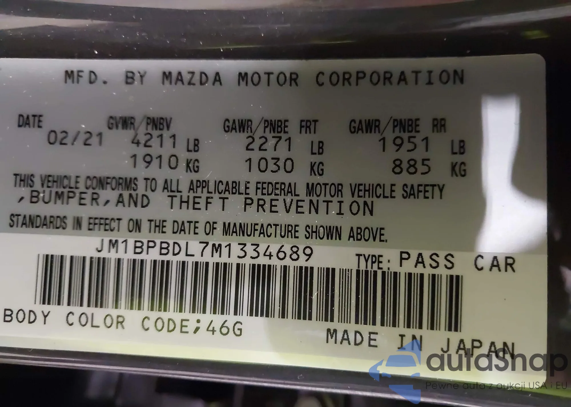 VIN: JM1BPBDL7M1334689