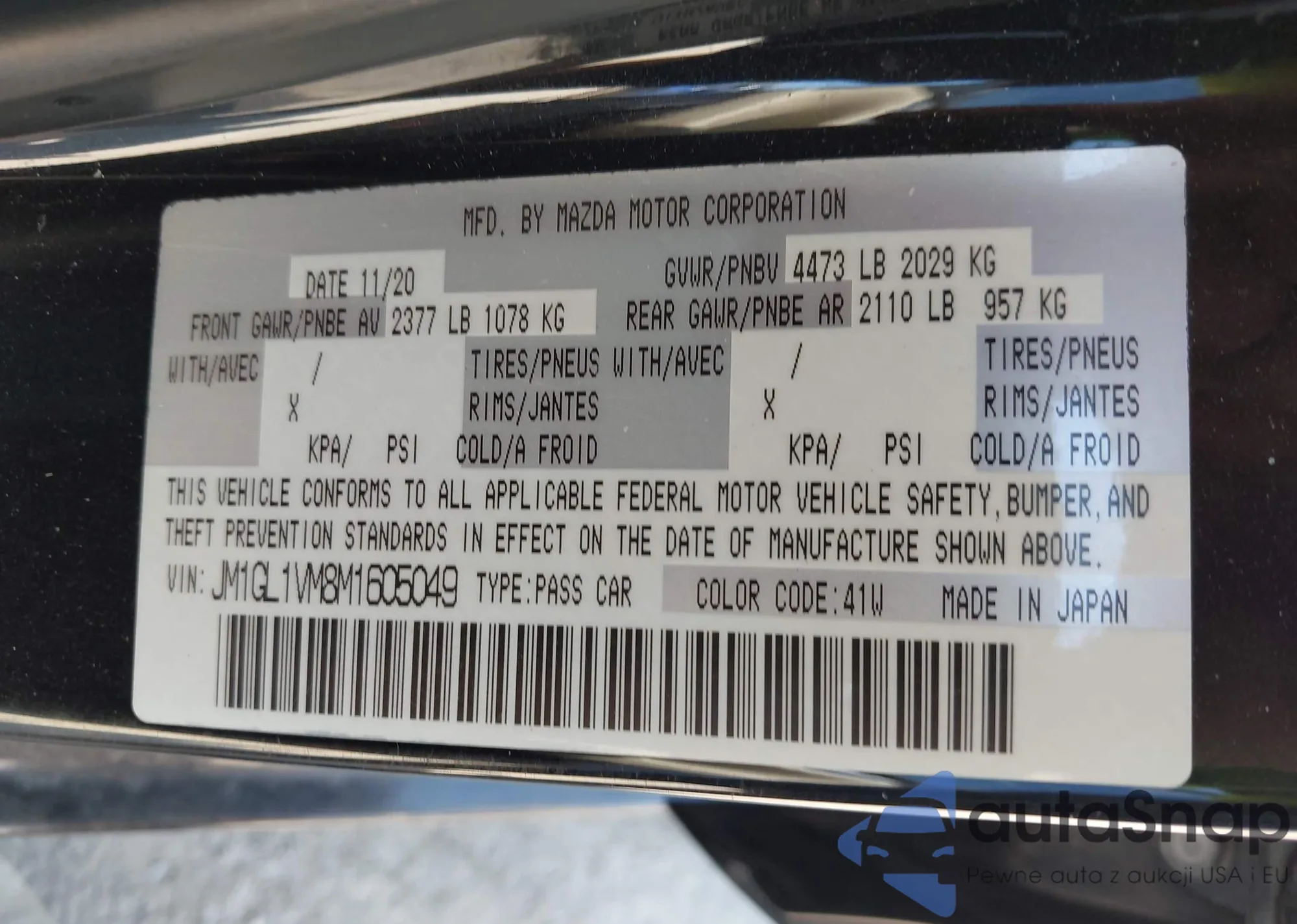 VIN: JM1GL1VM8M1605049