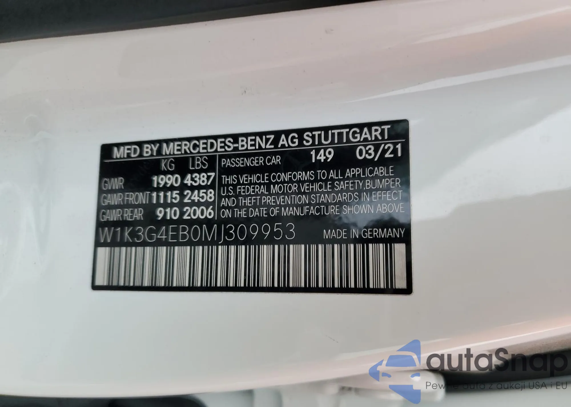 • VIN: W1K3G4EB0MJ309953