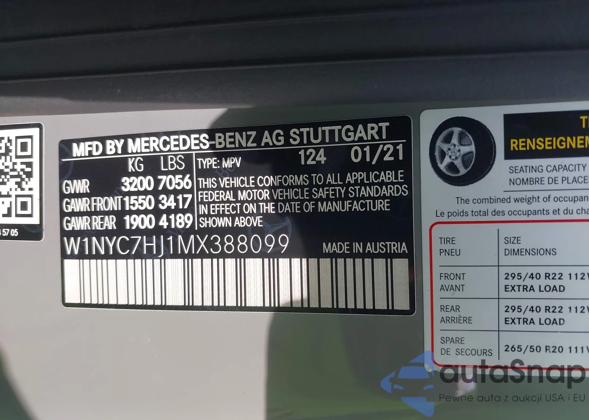 VIN: W1NYC7HJ1MX388099