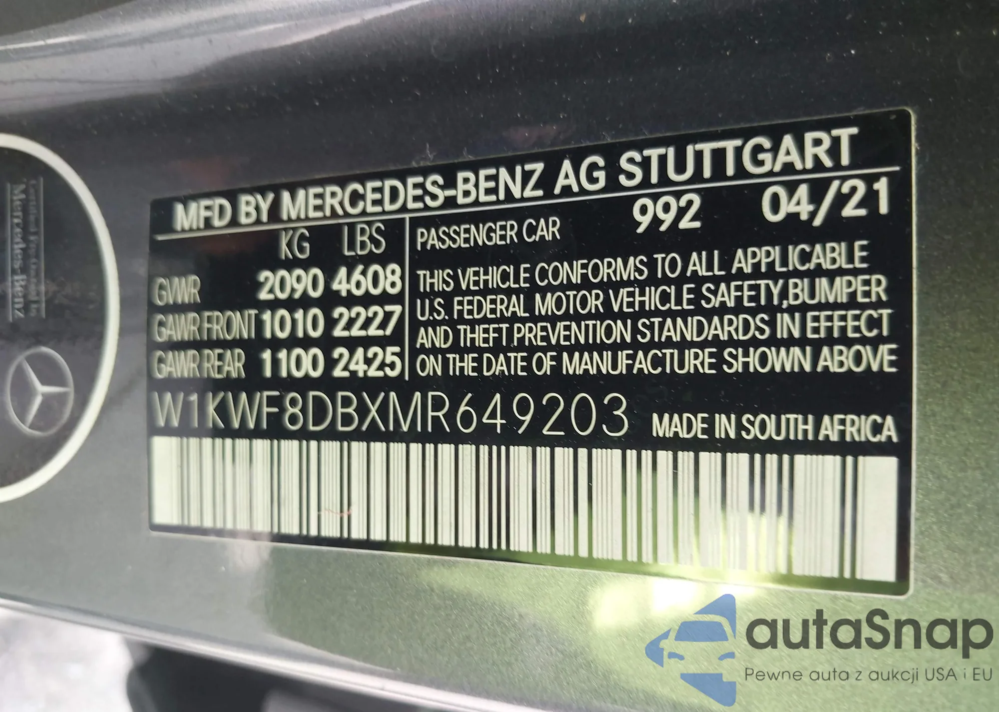 VIN: W1KWF8DBXMR649203